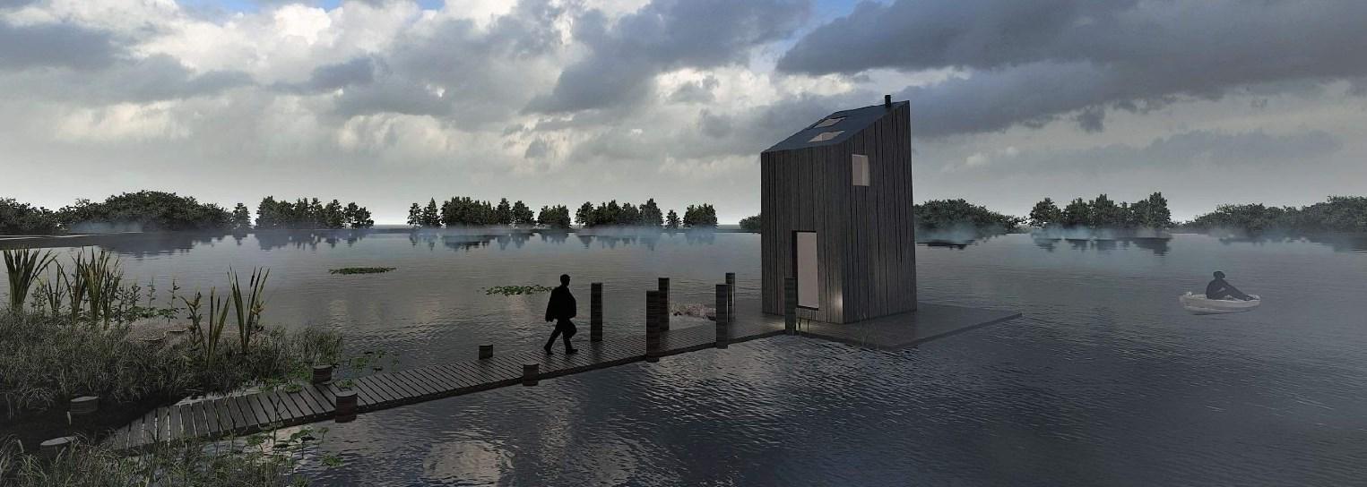 Temat realizowany w ramach projektu Power P4S Koncepcja modułowej kabiny dla rybaków, w której mogą znaleźć chwile wytchnienia i ochronę przed ciężkimi warunkami atmosferycznymi. Wnętrze zostało zaprojektowane w sposób kompaktowy i funkcjonalny. Wewnątrz znajduje się kominek, hamaki , toaleta i aneks kuchenny. Zaproponowano dwa rodzaje kabin: na platformie pływającej oraz na palach na zalewowym terenie