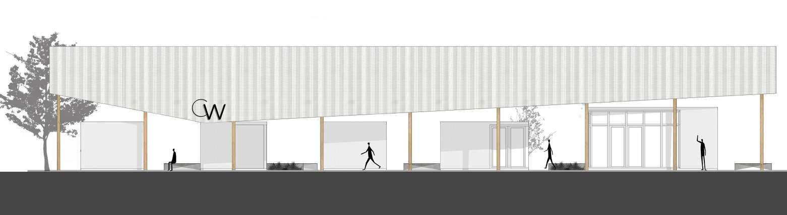 The project consists of two blocks with multiple divisible units. Block 1 has five buildings facing the main street, with pedestrian walkways and spaces for gathering. Block 2 was initially intended for the supermarket, but it can also be divided into three stores. Parking is located between the blocks for the public and on the north side for neighborhood residents. The commercial units only have equipped bathrooms, and the rest of the space is open-plan for flexibility, some of the units allow the possibility of mezzanine levels.