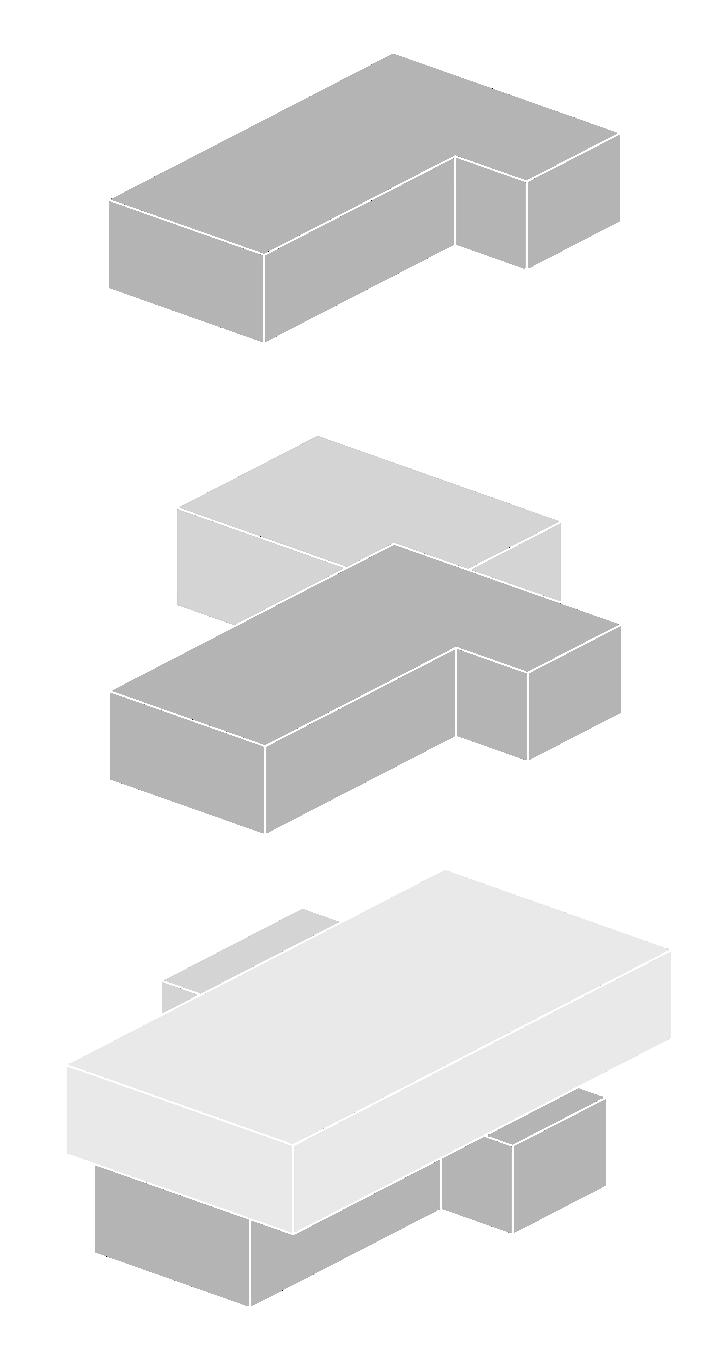 The building’s varying heights cater to the spatial needs of each activity