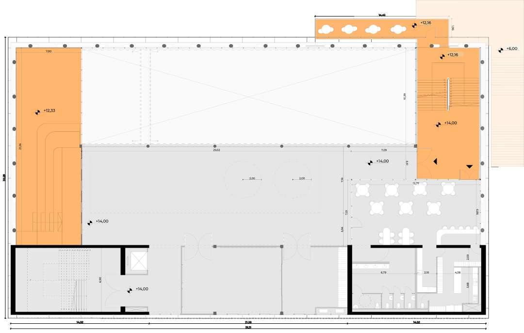 Mezzanine with training space, buffet and terraces.