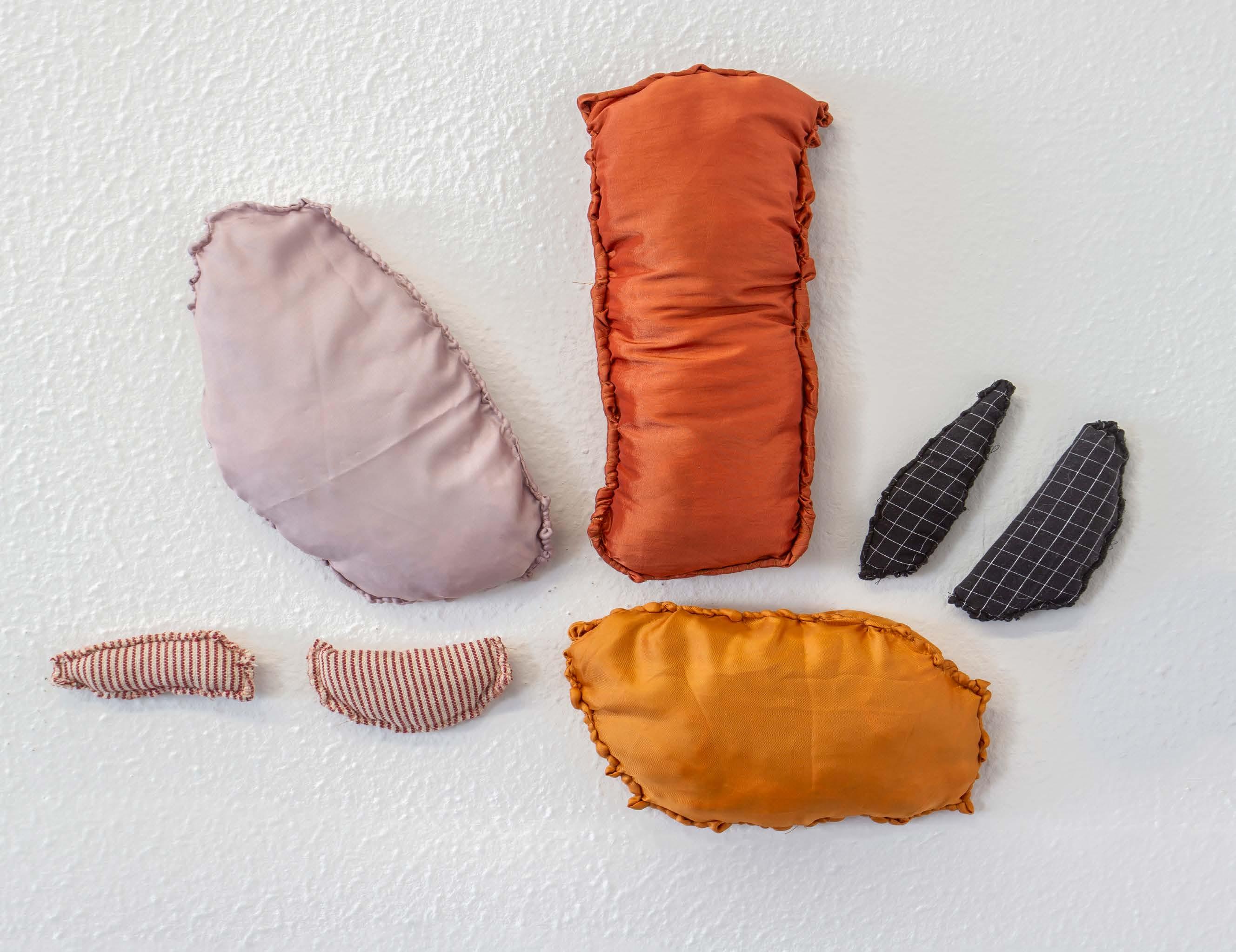o,o (2024) tecido, enchimento de sobras de fio e lã e linha de costura, 46x33x6cm