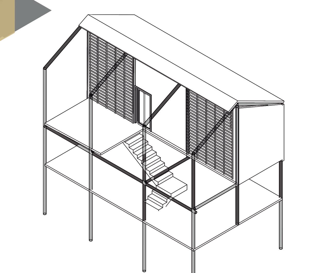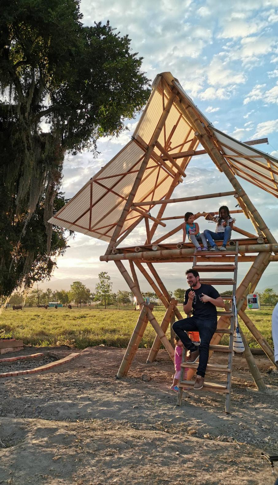 Este espacio construido en guadua, permite tener dos actividades al tiempo, al tener dos niveles, en el primer nivel es posible jugar y tener una relación con el árbol del abuelo (Símbolo del lugar) y en el segundo, es posible ver el paisaje lejano, el sol, la luna y las estrellas, en donde se vuelve ameno conversar.