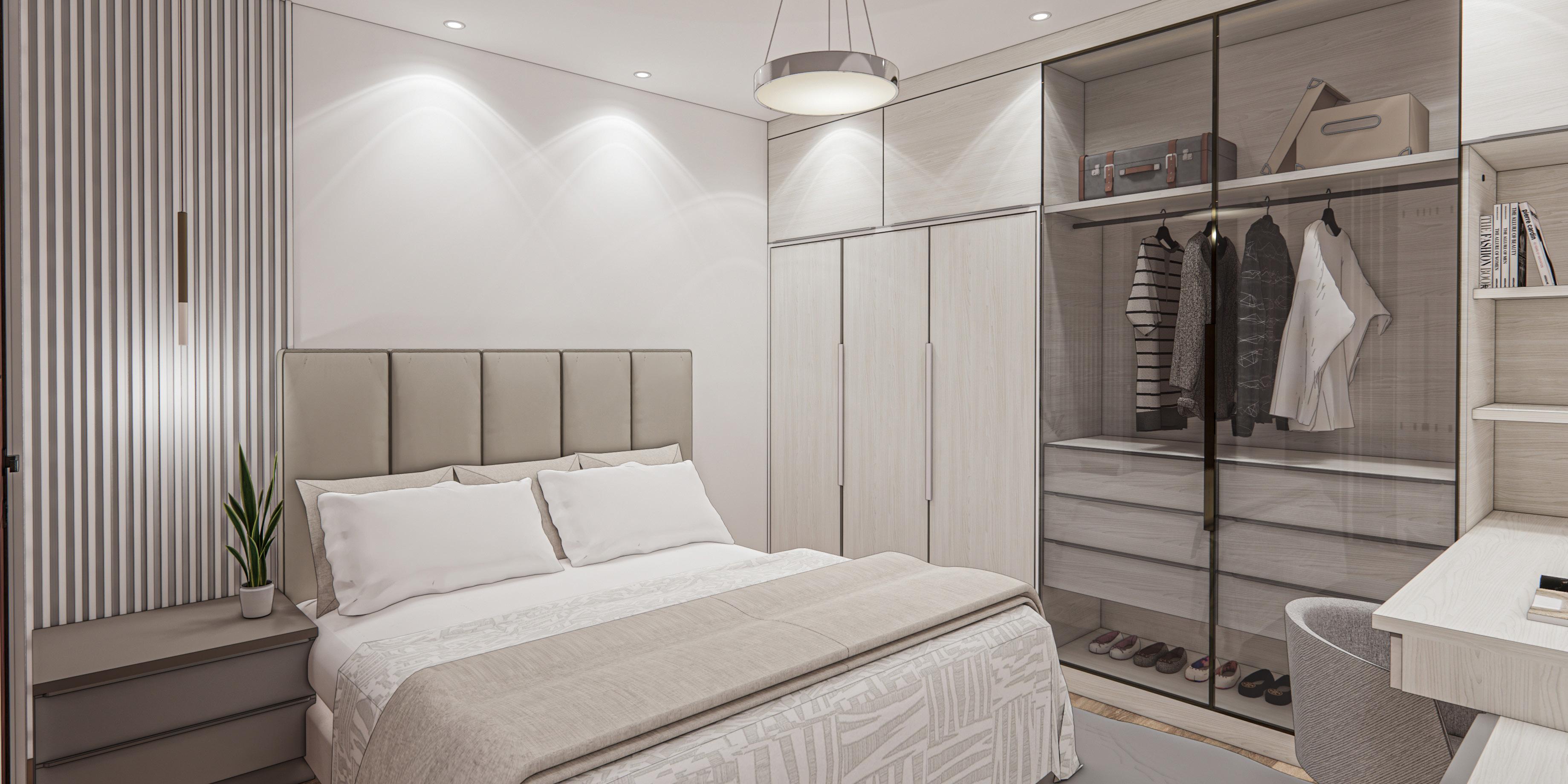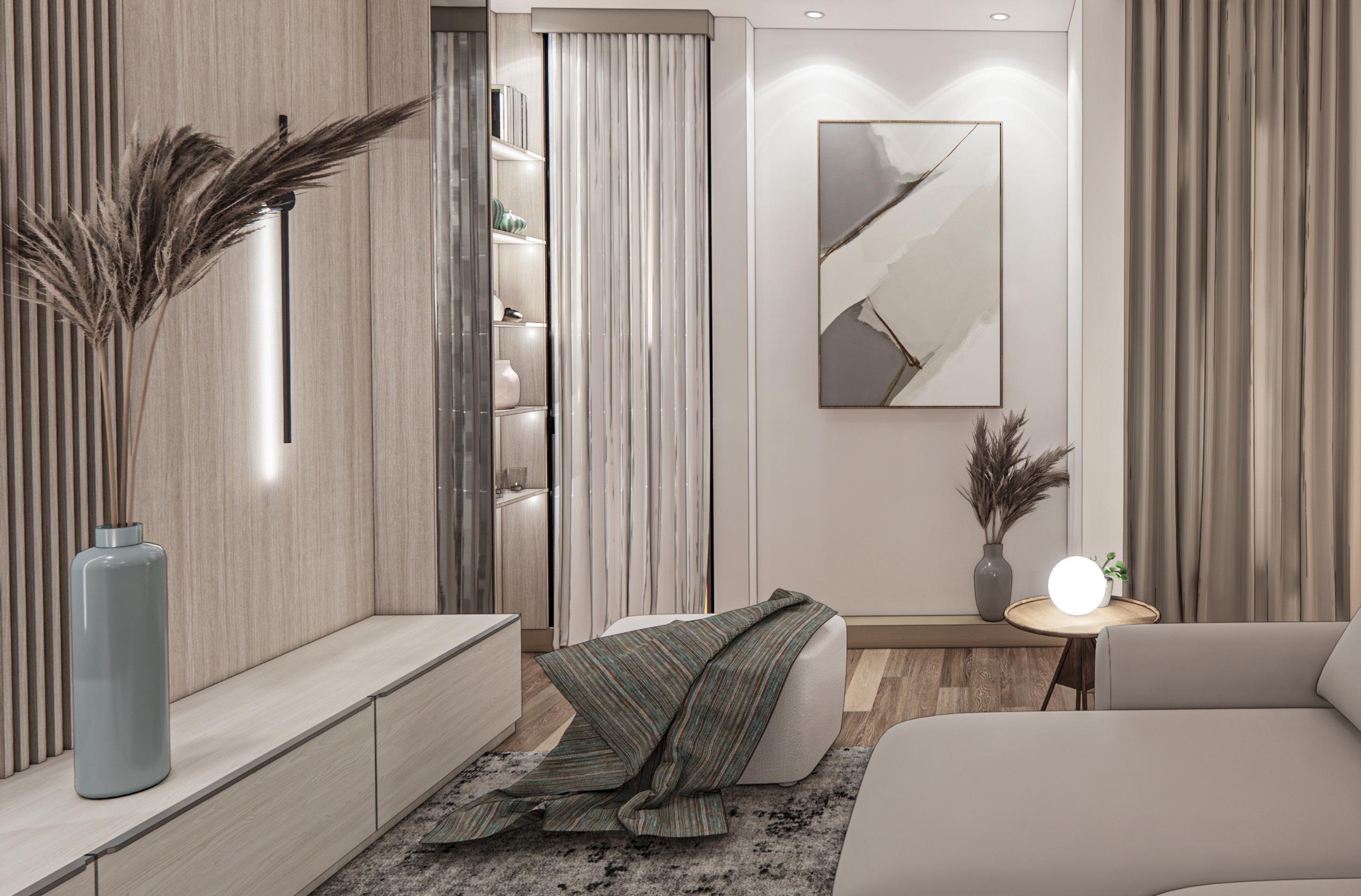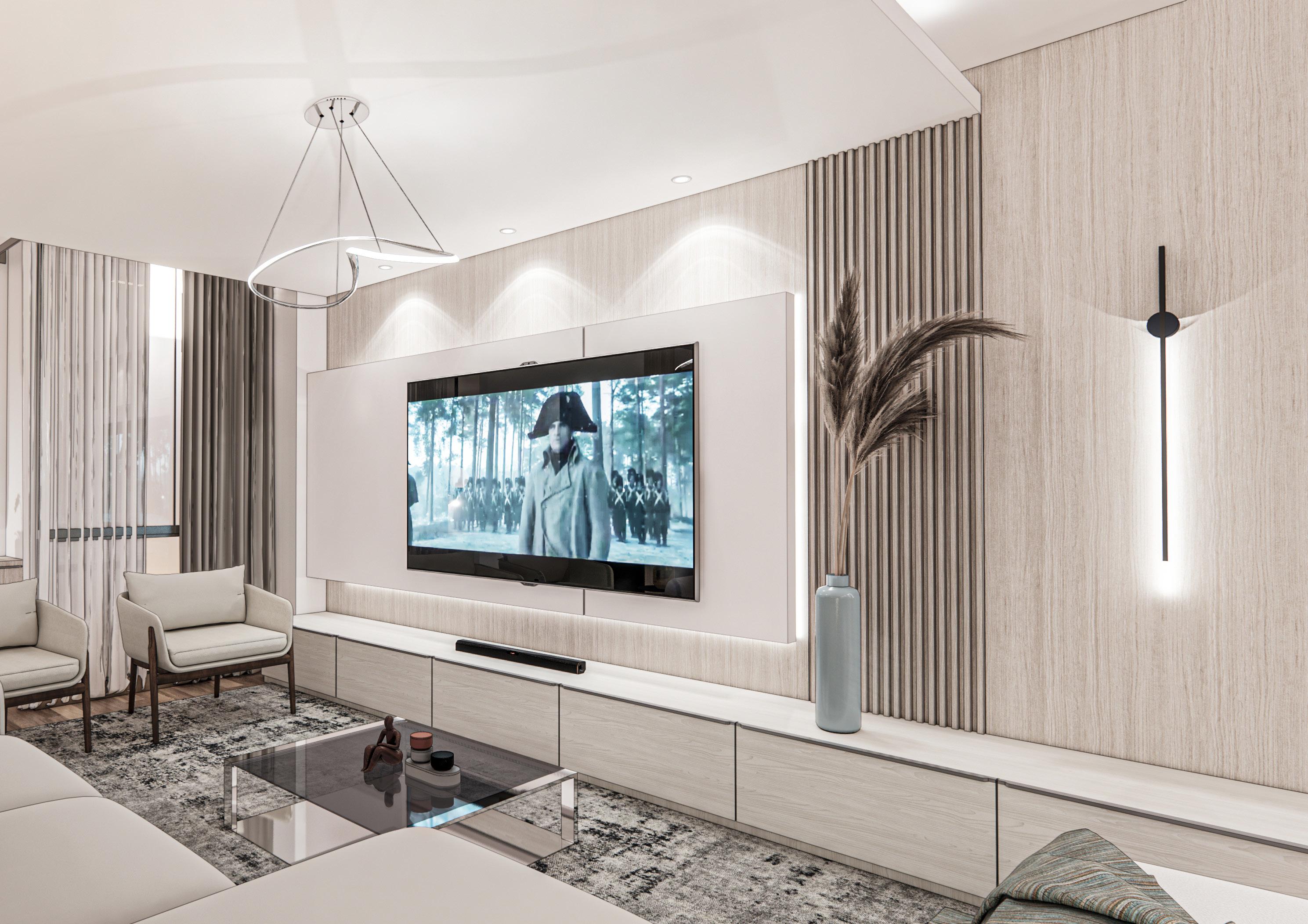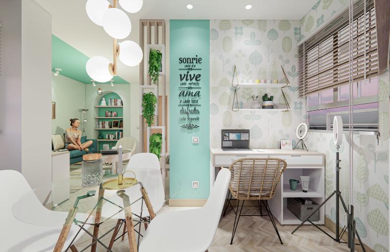 The requirements for this space were the organization and layout of a living room and a work-from-home space, taking into account preferences such as a calm, minimalist atmosphere, for the relaxation and tranquility of the couple and their pets.