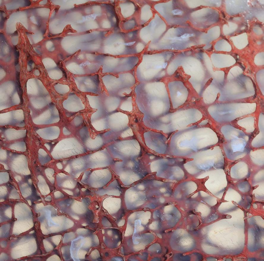 The custom light fixture project was designed based on a chosen micrograph of a 10x zoomed image of dinosaur in clear agate. Agatized bones occur from permineralization which is the replacement of matter by minerals, helping preserve and fossilize the bones. The project development began with a dissection of the original micrograph and observing its qualities whether that would be its layering and branching techniques, repeating nodes, and its emphasized natural voids when its contrast is inverted. With these analytical observations, they were then translated and used as inspiration for my light fixture Ossy, a shorted term from the Greek root word of bone, osteo. The fixture expresses a multi-layering technique that combines small and large scale voids, in reference to the original micrograph. Ossy can be considered a focal glow fixture that diffuses light from a centralized point and can be used as an accent side table, pendant, or wall sconce featured in the fixture family.
