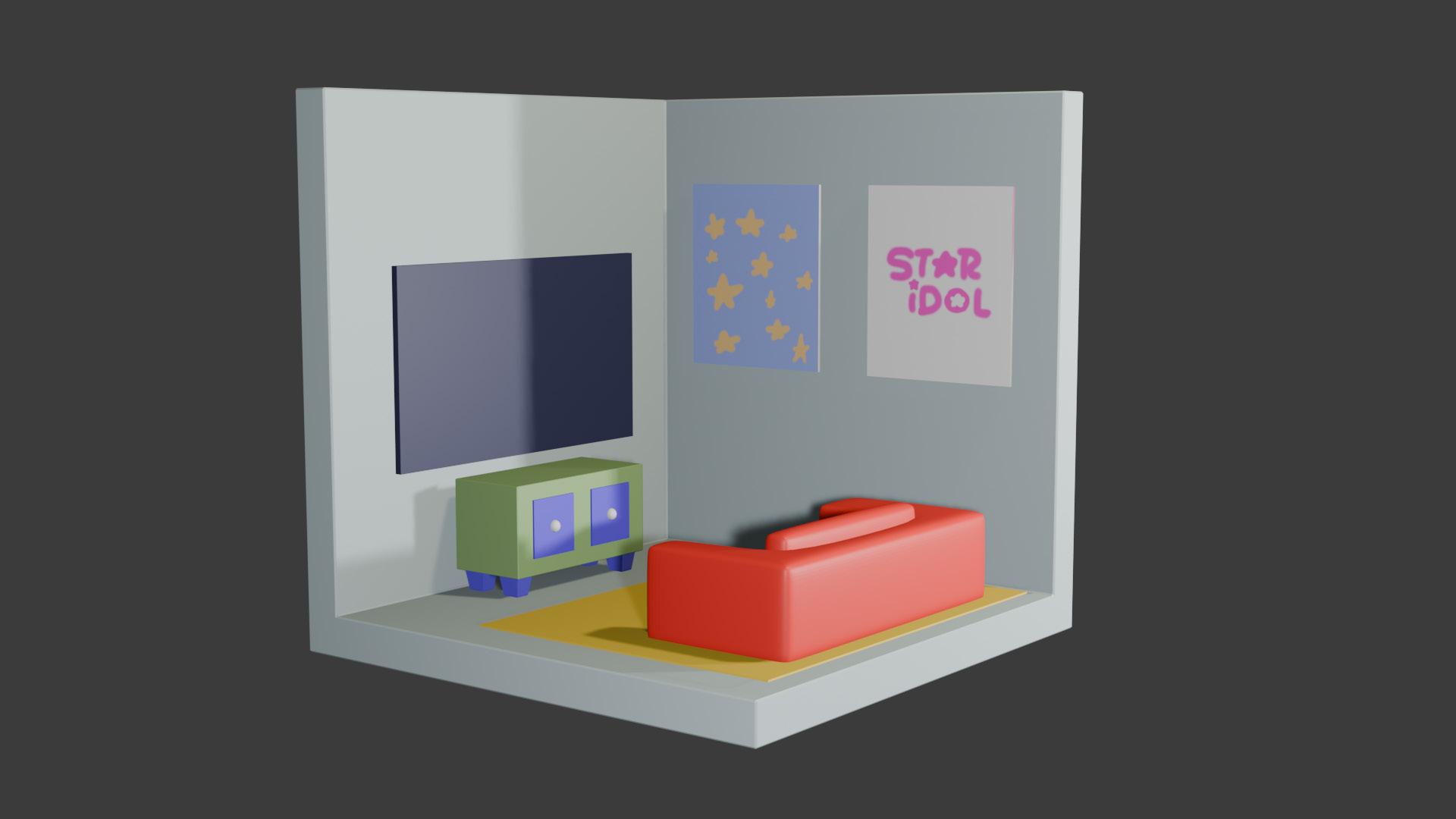 my Final platform is a Isometric cube mock-up. This was also rendered in blender to show one of the various rooms to perform with friends in.