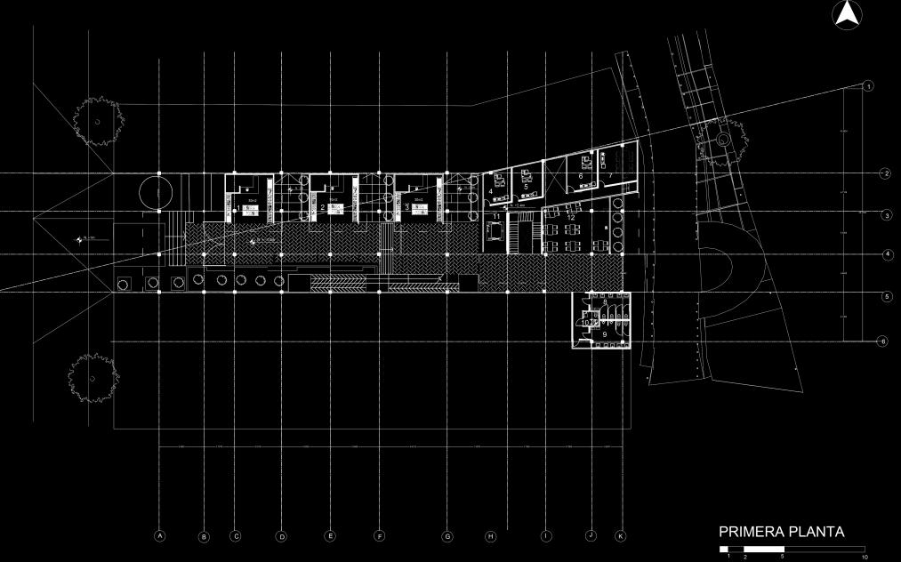 La volumetría nace de un contenedor, a partir de métodos como la axialidad, que permiten un recorrido continuo a lo largo del proyecto.