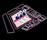 Se explora la importancia de los recorridos y su capacidad para generar sensaciones. La idea de “punto” y “contrapunto” permiten una organización mediante un eje que es además, conformado por las dilataciones que se desarrollan en la misma rejilla de 9 cuadrados.