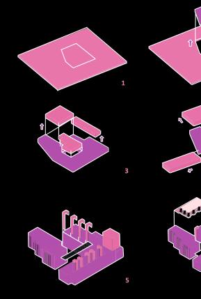 4. Sustracción volúmenes segundo y tercer piso 5. Adición elementos de fachada 6. Incorporación diseño exterior