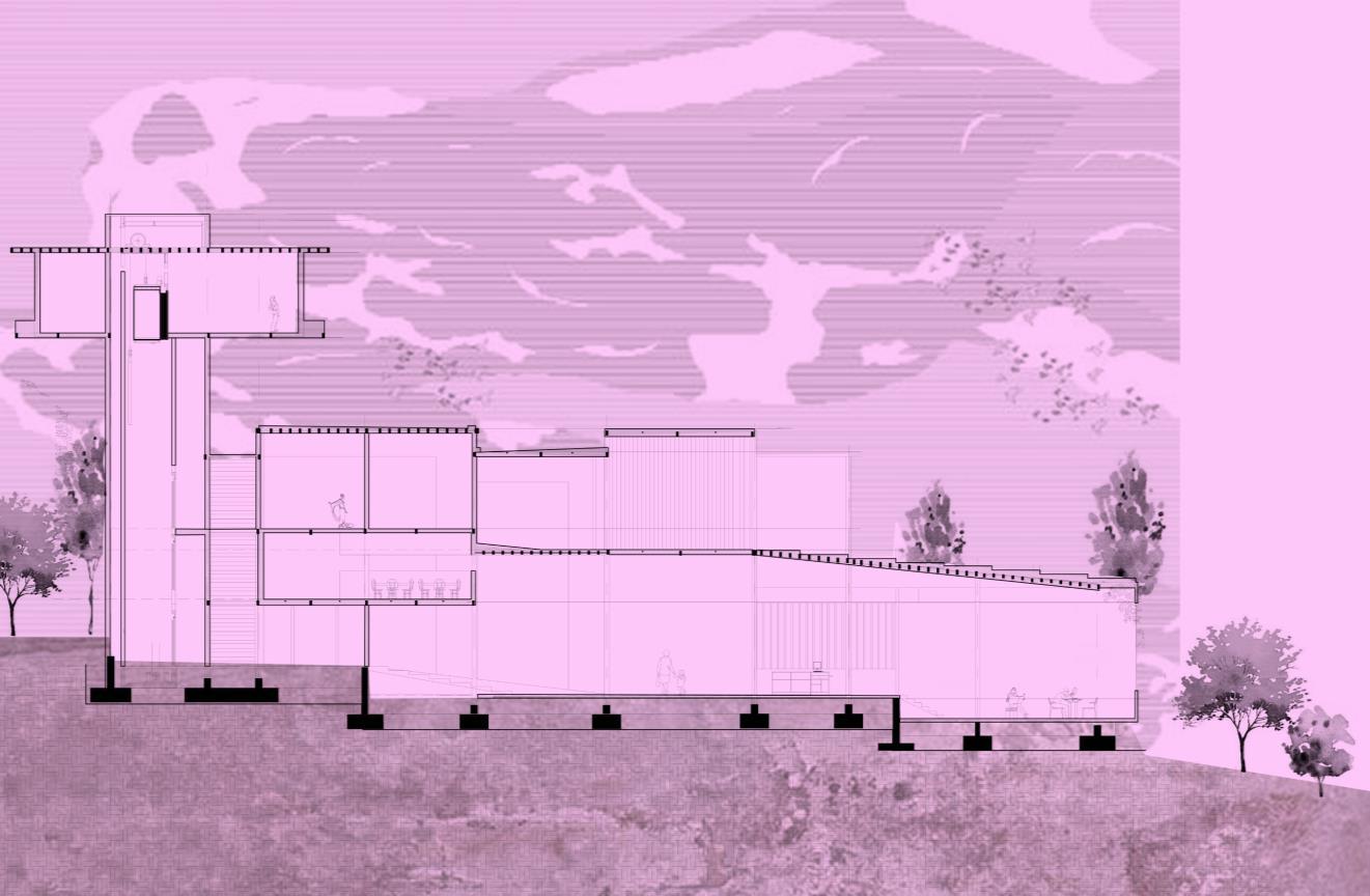 Es una muestra de la implantación en un terreno, y cómo se pueden manejar los cambios de niveles a partir de él. Se estudia la conexión con el lugar, y la capacidad de unir la arquitectura con el medio natural, haciéndolos uno, dándoles a las personas la capacidad de estar en un hábitat que aunque fue intervenido, no fue transformado.