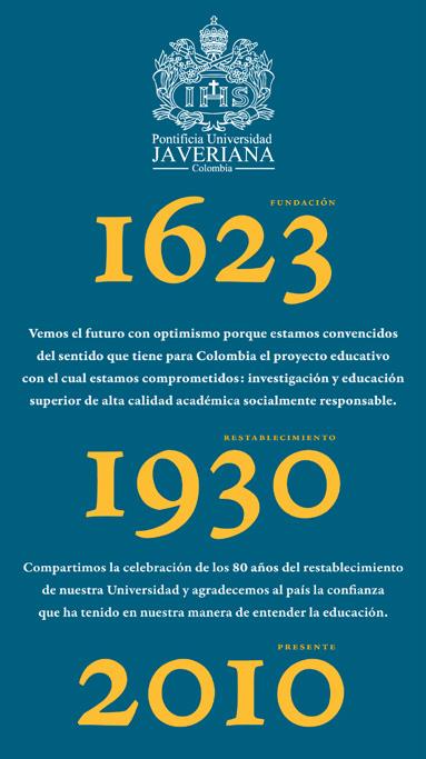 Cartel: Pontificia Universidad Javeriana, Setenta años del restablecimiento de la Compañía de Jesús en Colombia. 2010.