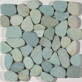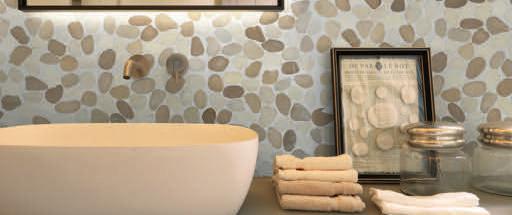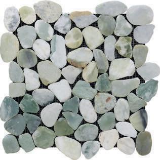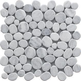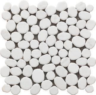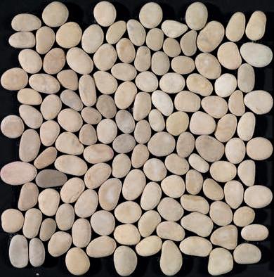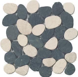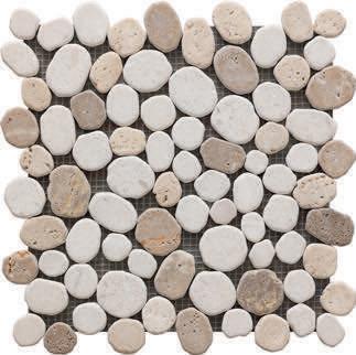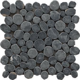 Sassi di fiume dalle forme tondeggianti. moduli per la posa vengono montati su rete in fibra attraverso uno schema irregolare per perdere, una volta posati, la matrice di base ed offrire un’immagine d’insieme esteticamente migliore. Real river stones in round shape. The mosaic modules on a fibre net are specifically designed to loose the “tile look” after the installation. This irregular scheme allows the natural product to display a homogeneous rug surface to offer an esthetical whole look most similar to a riverbed.