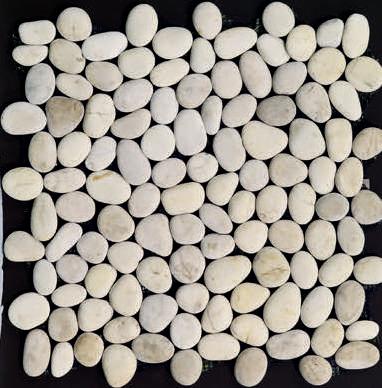 Galets de rivière de forme arrondi, monté sur trame de fibre emboîtable.