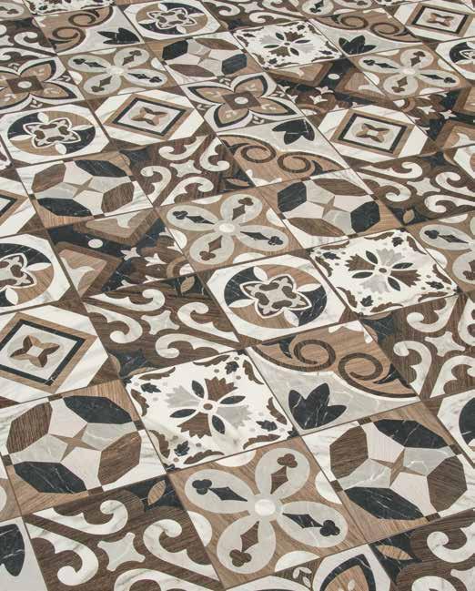 La varietà di soggetti di Glam Mix lascia libero l’estro e si presenta duttile e adatto ad assecondare stili di erenti. Il gioco di decori e la possibilità di molteplici abbinamenti la rendono unica e versatile. Die Vielfältigkeit der Motive von Glam Mix lässt der schöpferischen Phantasie freien Lauf und ermöglicht die Anpassung an die verschiedensten Stile. Sie ist einzigartig mit ihrem Spiel der Dekors und der Möglichkeit der vielseitigen Kombinationen. La variété des sujets de Glam Mix laisse libre inspiration, il est ductile et s’adapte à di érents styles. Le jeu des décorations et la possibilité de multiples combinaisons la rend unique et versatile. Разнообразие узоров Glam Mix оставляет свободу для творчества и подходит для самых различных стилей. Игра декоров и возможность многочисленных сочетаний делает её уникальной и универсальной. INTARSI GLAM + PRIMEWOOD