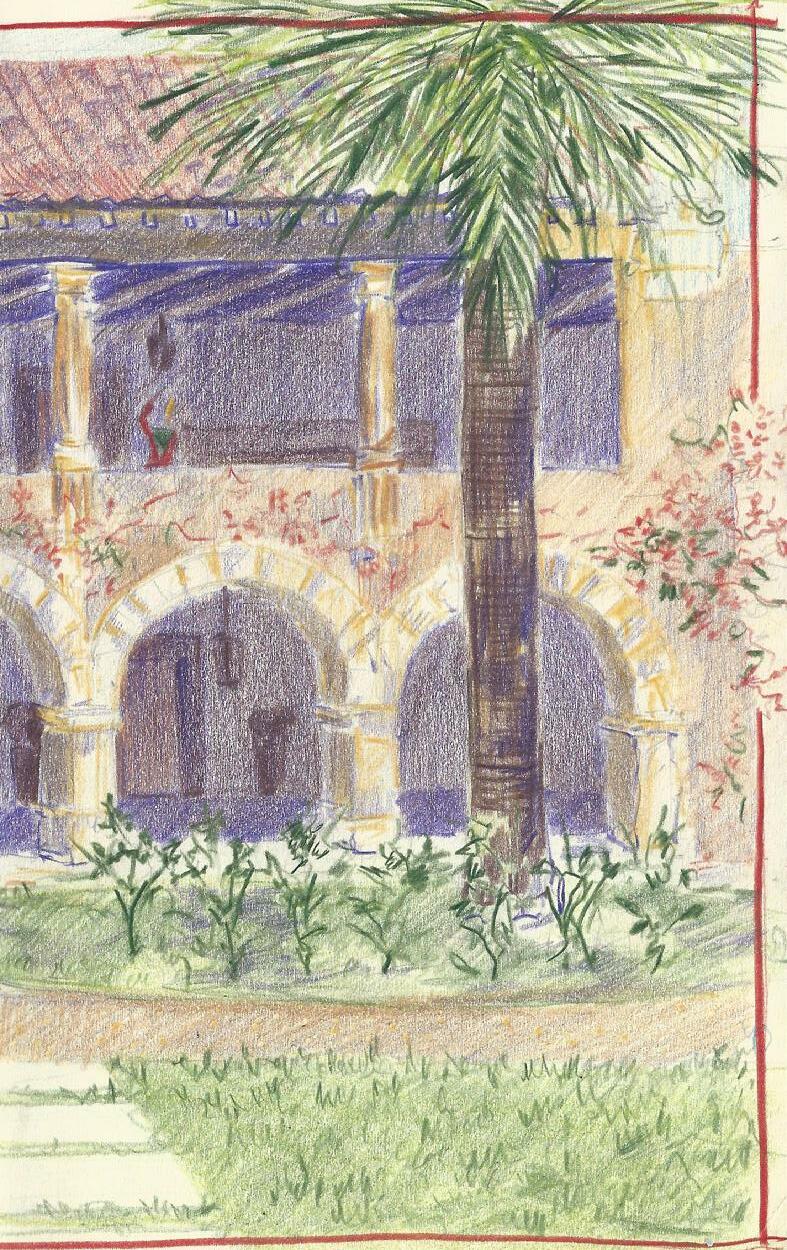 El patio esta rodeado por el estudio, esto permite que los estudiantes caminen con libertad de un extremo a otro.