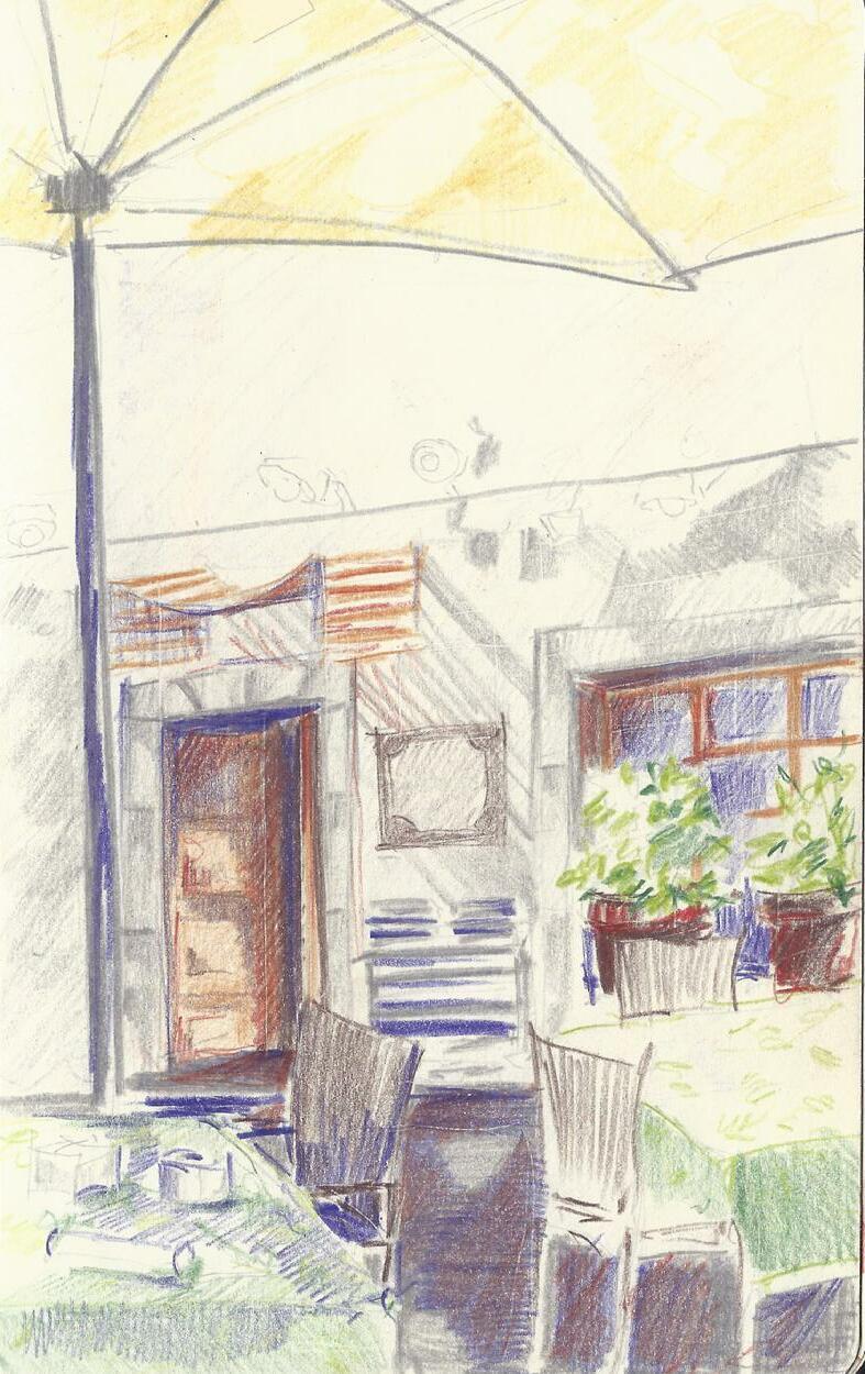 El patio es un lugar de descanso e inspiración. cuenta con una huerta la cual tienen que cuidar y alimentar los propios artistas.