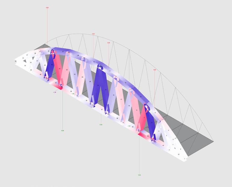 In my karamba script I focused my loads towards the center of the bridge and built my physical model to mimic this. The bridge that I created an analysis on is 360 feet long by 60 feet wide by 80 feet tall. This allows for the weight to be distributed throughout the length of the bridge.