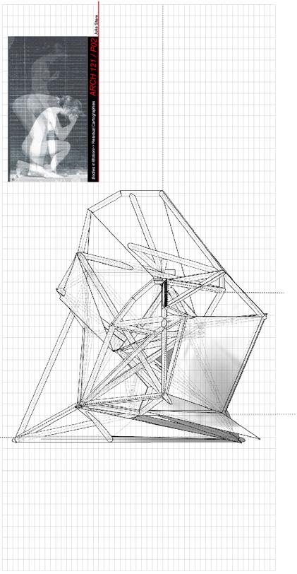 This three dimensional grid also became two dimensional in the plan and shows how the structure designed follows these pathways. I started designing from the ceiling down to the floor and expanded these lines into their three dimensional geometries.