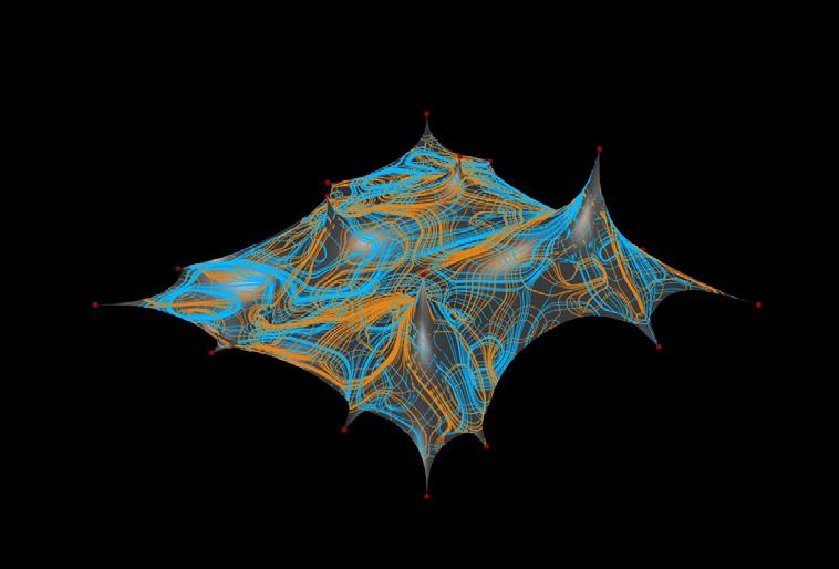 I created a grasshopper and kangaroo script to simulate form-finding of a tensile structure. I used karamba to analyze the tensile structure and compute the forces flow and the principal stress lines. Finally I created a physical model of the tensile structure using wooden dowels and cheese cloth.