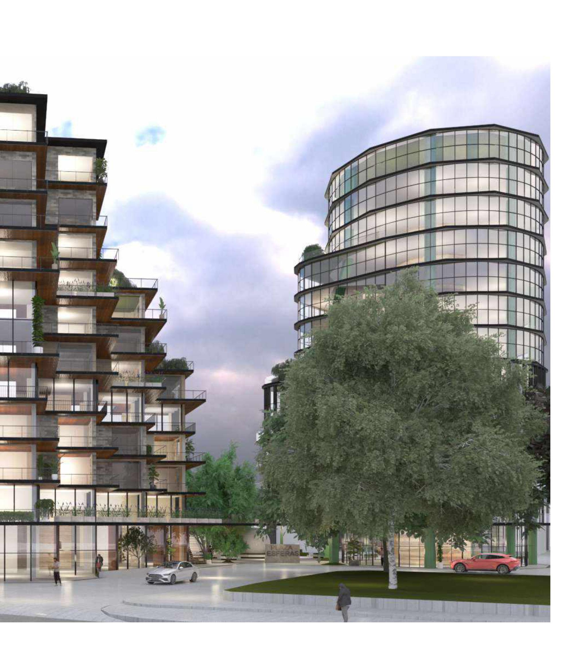 Dentro de su manzana, se proyecta una estación de metro, que atraerá grandes flujos de personas que serán recibidas por el proyecto en su primer nivel a través del comercio, restaurantes y mobiliario público. Su edificio circular alberga oficinas de co-working que ofrecen la posibilidad de recibir constantemente a una población que mantiene el edificio vibrante, así como un restaurante en su último piso, que brinda vistas panorámicas de la capital.