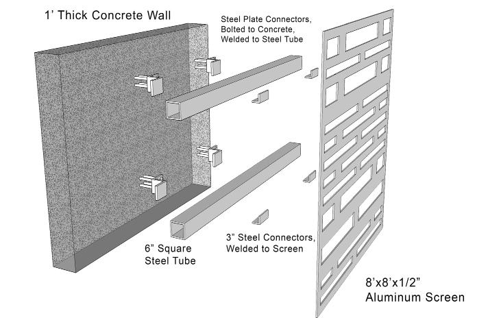O design inclui duas telas em materiais diferentes que se intercalam entre si, criando um jogo de materiais e luz. O de concreto cria uma área de estar externa onde a luz solar oscila, tornando-o um espaço único. A de alumínio, mais delicada, envolve a estrutura do ginásio fazendo o mesmo jogo com a luz, protegendo o interior dos reflexos e criando novamente uma sensação única.
