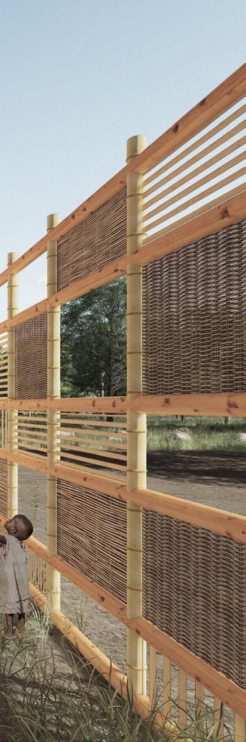 CERCADO DE BAMBU, PALHA, TECIDO E MADEIRA