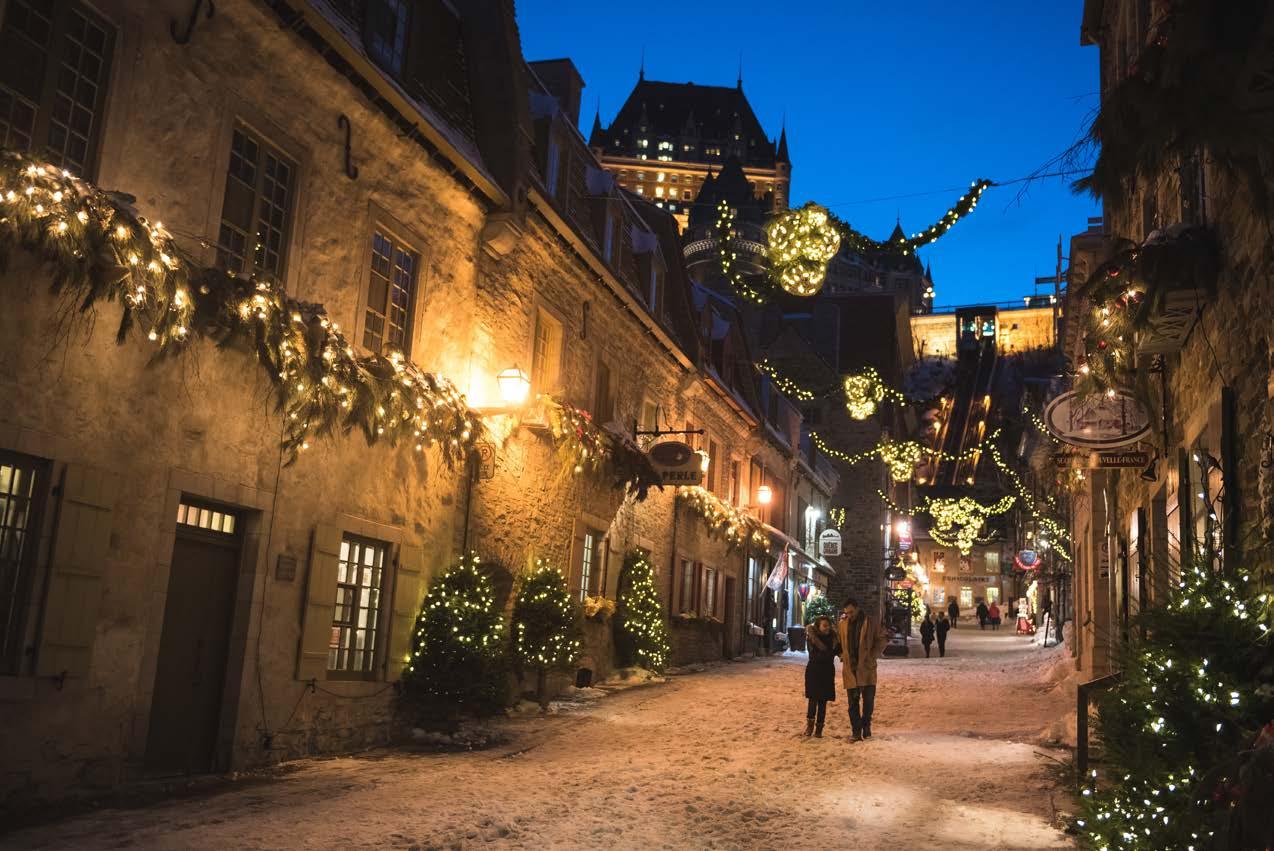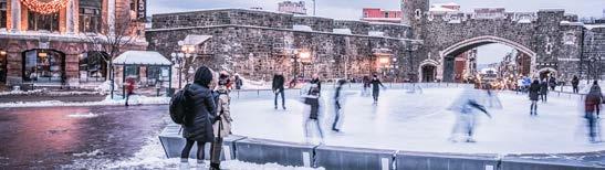 Desayuno. Tiempo libre para disfrutar a su aire el centro histórico, patrimonio cultural de la humanidad, con sus estrechas calles, sus boutiques y museos, podrá realizar la actividad de patinaje sobre hielo, o compras en el centro comercial más grande de Quebec. En la noche las festividades de año nuevo son al exterior y a pasos de su hotel. Espectáculos de bandas canadienses en vivo, festival de esculturas de hielo y a la media noche fuegos artificiales al ritmo de los gritos de un ‘Bonne Année’.