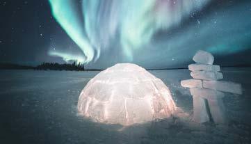 Opcional Hotel del Hielo: es una experiencia única que despierta los sentidos y conecta con la calma del invierno, con una cálida bienvenida un cóctel servido en un vaso de hielo, mientras exploras los increíbles detalles arquitectónicos tallados completamente en nieve y hielo. Durante una noche mágica, descansarás en una habitación artística, donde el silencio del entorno