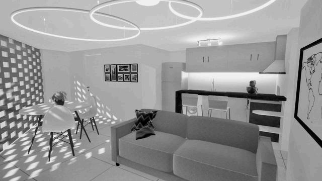 El proyecto consistió en la renderización de un monoambiente, donde tuve la oportunidad de intervenir mínimamente en el diseño original Mi enfoque estuvo en resaltar los aspectos esenciales del espacio, utilizando la iluminación, los materiales y las texturas para destacar su funcionalidad y estética, respetando las decisiones del diseño previo