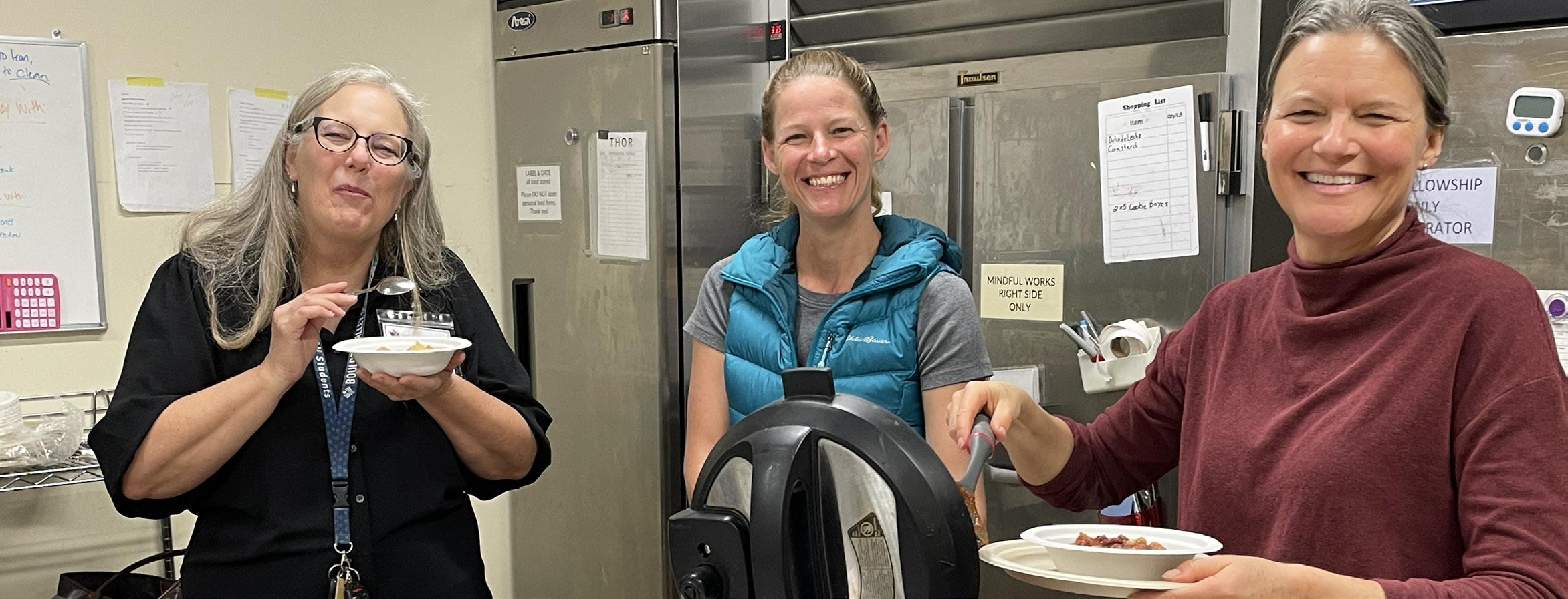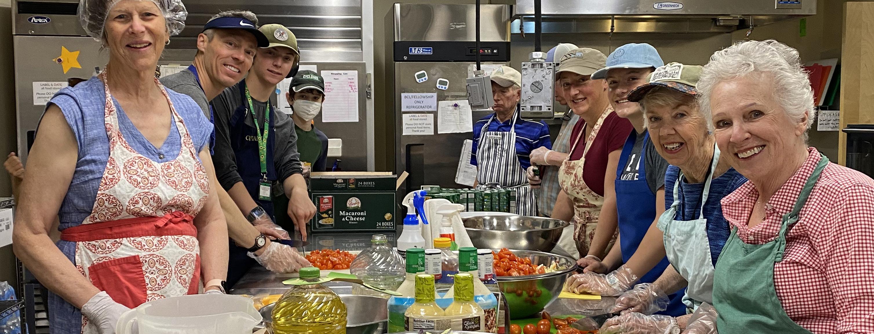 First Cong partners with Bridge House, Community Table and other Pine Street churches to provide weekday evening meals to Boulder’s unhoused community. Each Friday evening 4:30 – 5:30 PM dinner is served in Plymouth Hall. Bridge House provides set up, the hot meal, and completes clean-up. FCC provides a host from 4 – 6 PM each Friday night. Please sign up (https://tinyurl.com/bdeuzds9) to be trained to serve as a host or to serve as a host if you are already trained.