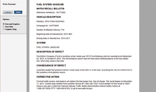 Service history can also be used to keep customers safe. Occasionally, manufacturers may need to recall a vehicle for service due to a safety concern that has been identified for a vehicle (FIGURE 1-2). This means that the manufacturer has found that the potential exists for a dangerous situation to occur, and the vehicle must be serviced to eliminate it. Depending on the nature of the problem, recalls can be mandatory and required by law, or manufacturers may voluntarily choose to conduct a recall to ensure the safe operation of the vehicle or minimize damage to their business or product image. The service history would be used to verify that the vehicle is subject to the recall and has or has not had the recall service completed. The technician would perform the service, update the service history, and return the vehicle to the customer.