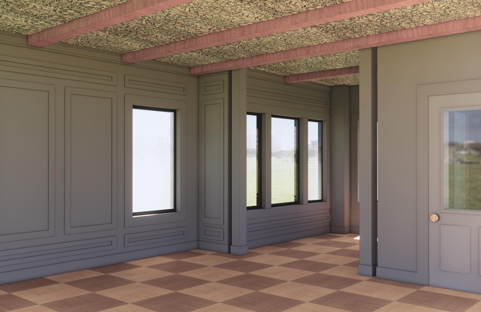 WINDOW TREATMENT & FIREPLACE DETAIL