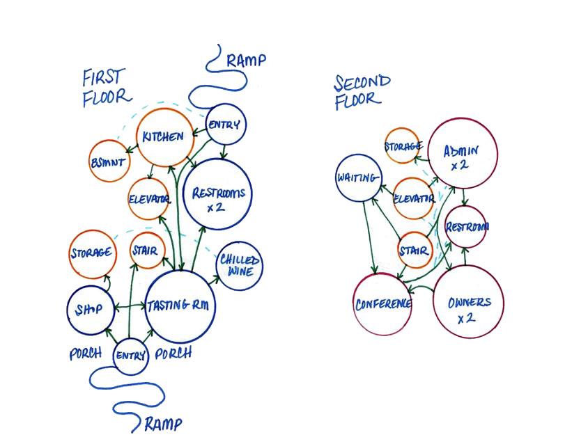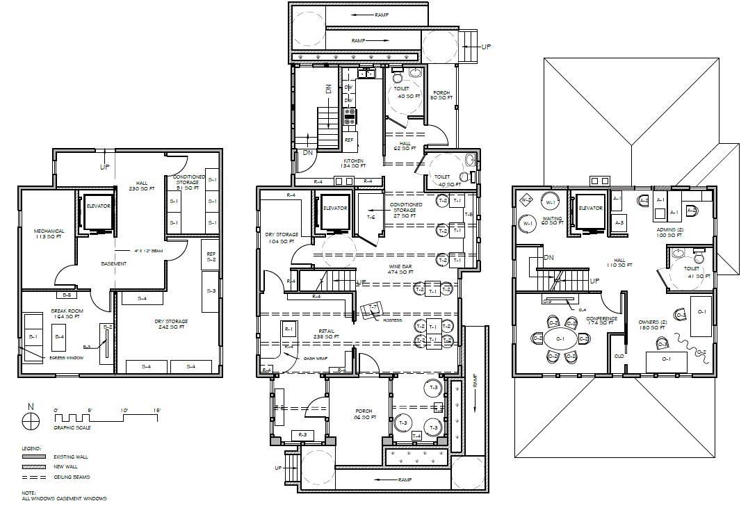 The Twisted Vine Tasting Room & Wine Shop project is a remodel of an existing historic foursquare house into a commercial business space. As much of the original architectural details as possible have been incorporated into the new design. The overall layout has been minimally rearranged to open up the public spaces, to incorporate additional restrooms, and to install an elevator for accessibility to all floors. Ramps have also been added at the front and back entrances for improved accessibility.