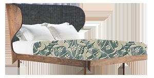 » CUSTOM UPHOLSTERED HEADBOARD IN WALNUT/CANVAS