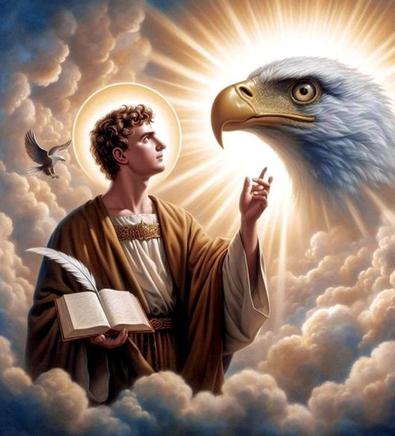 EláguilasimbolizaaJuan porqueestaavese consideradaunanimalsabio yclarividente,quecuando vuelamiradirectamenteal sol,yelEvangeliodeJuanes másabstractoyteológico quelosdemás.