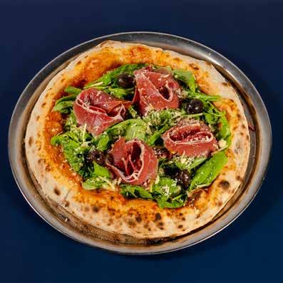 MOZZARELLA FIOR DI LATTE, JAMÓN CRUDO, RÚCULA & PARMESANO & PASSATA ITALIANA