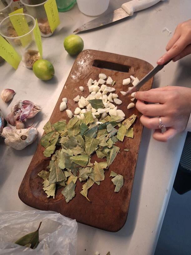 Para esta preparación lo primero que hicimos fue cortar la cáscara del limón y la cáscara de mandarina o naranja Luego lo colocamos en olla, para después hervirlo por 10 a 15 minutos. Después cuando se cumplió el tiempo lo mezclamos con el alcohol y todo eso lo invertimos con un embudo en la botella
