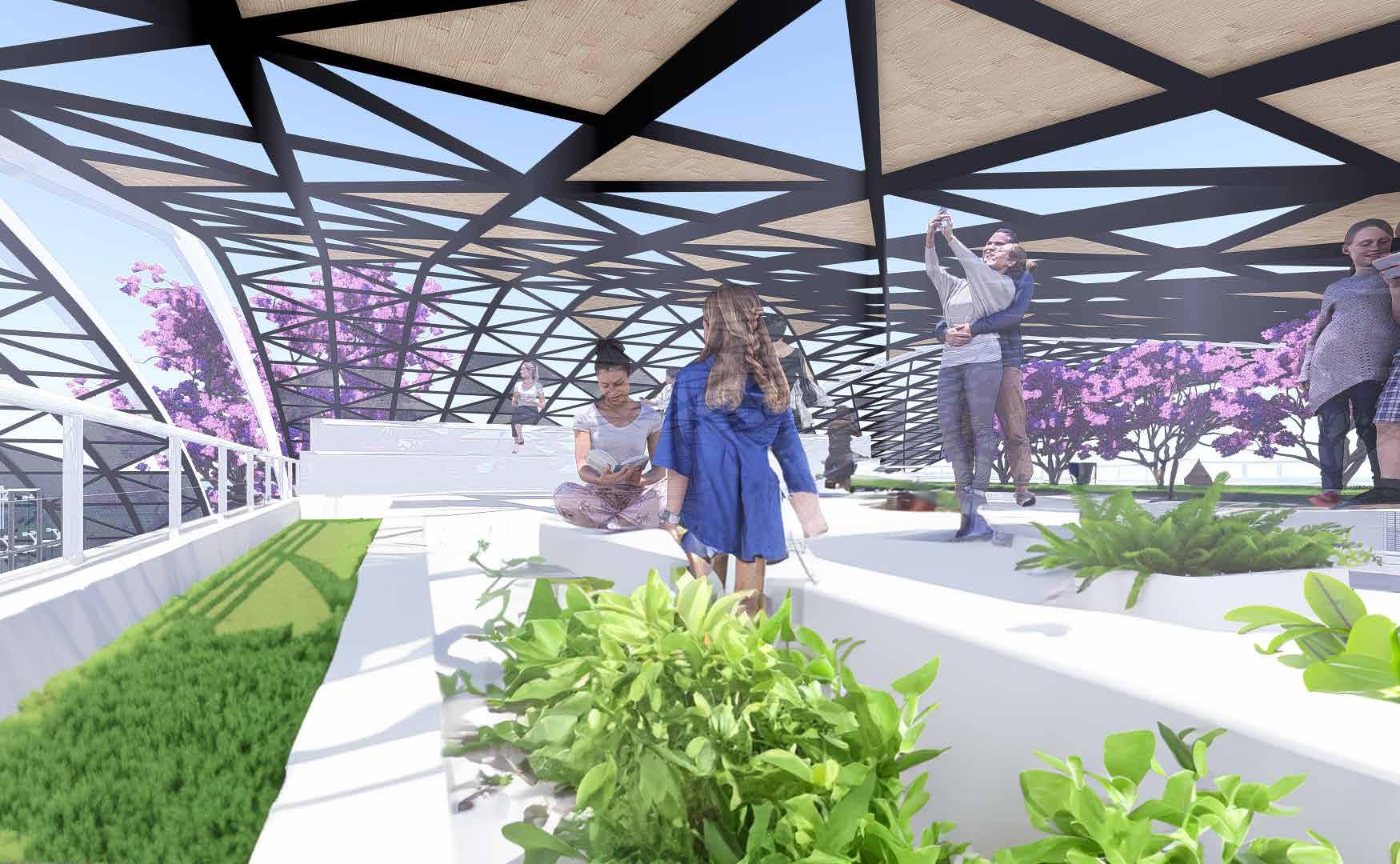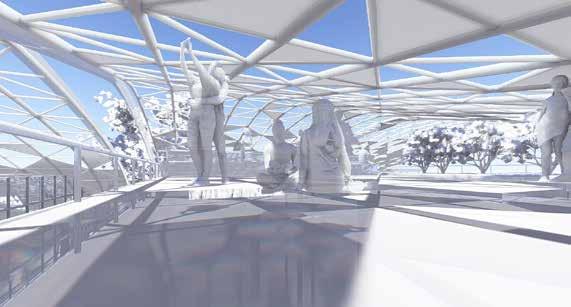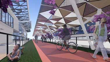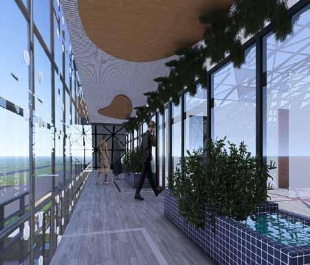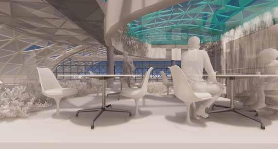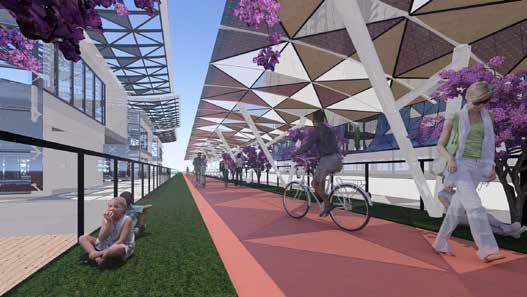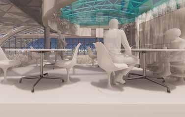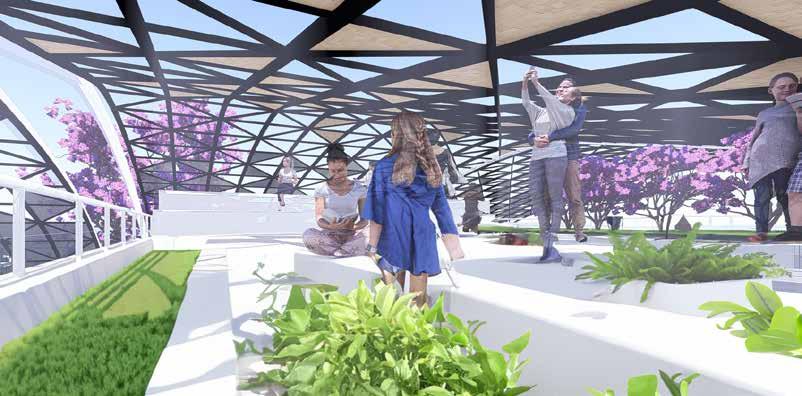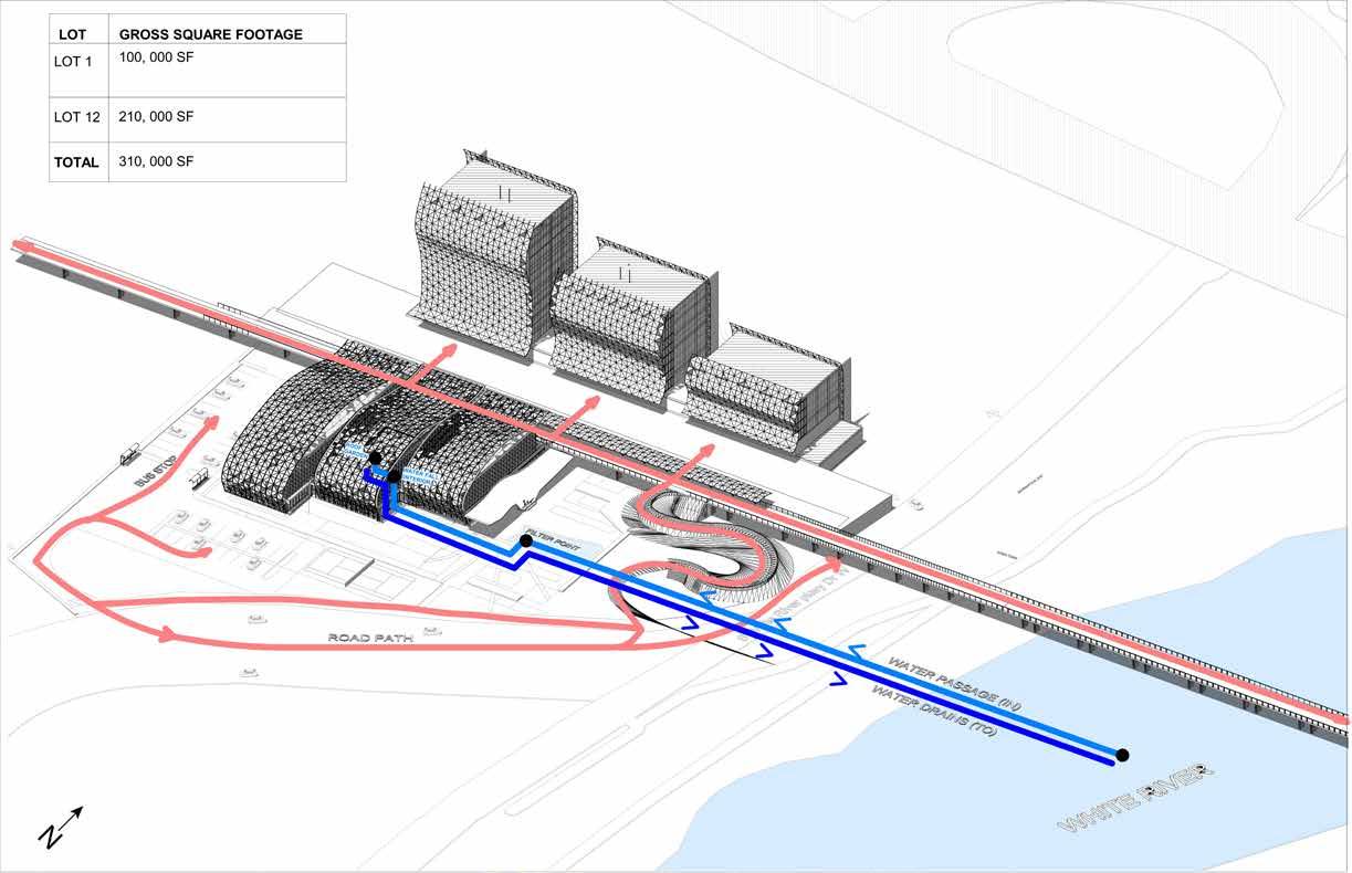 One of the project’s goals is to prioritize long-term economic impacts. The site’s proximity to public transit and bikeability are essential factors, and the new pedestrian bridge connection to Downtown Indianapolis increases the site’s accessibility as a connection point and destination. This project will be a key location and contribute to the local economy for the next 20 years as the City of Indianapolis is looking to expand the downtown area with the development of new business headquarters and sports amenities. A programmatic focus on local business incubators, accessible health services, mixedincome housing, and alternative food systems empowers the community to make financial decisions that align with their local economy and mitigate the effects of gentrification. While the first costs of the design are higher than first costs of typical buildings of a similar type, the projected longterm operations and human costs are more cost-effective. The value added to the community beyond cost is in increased greenspace, recreation areas, and third spaces.