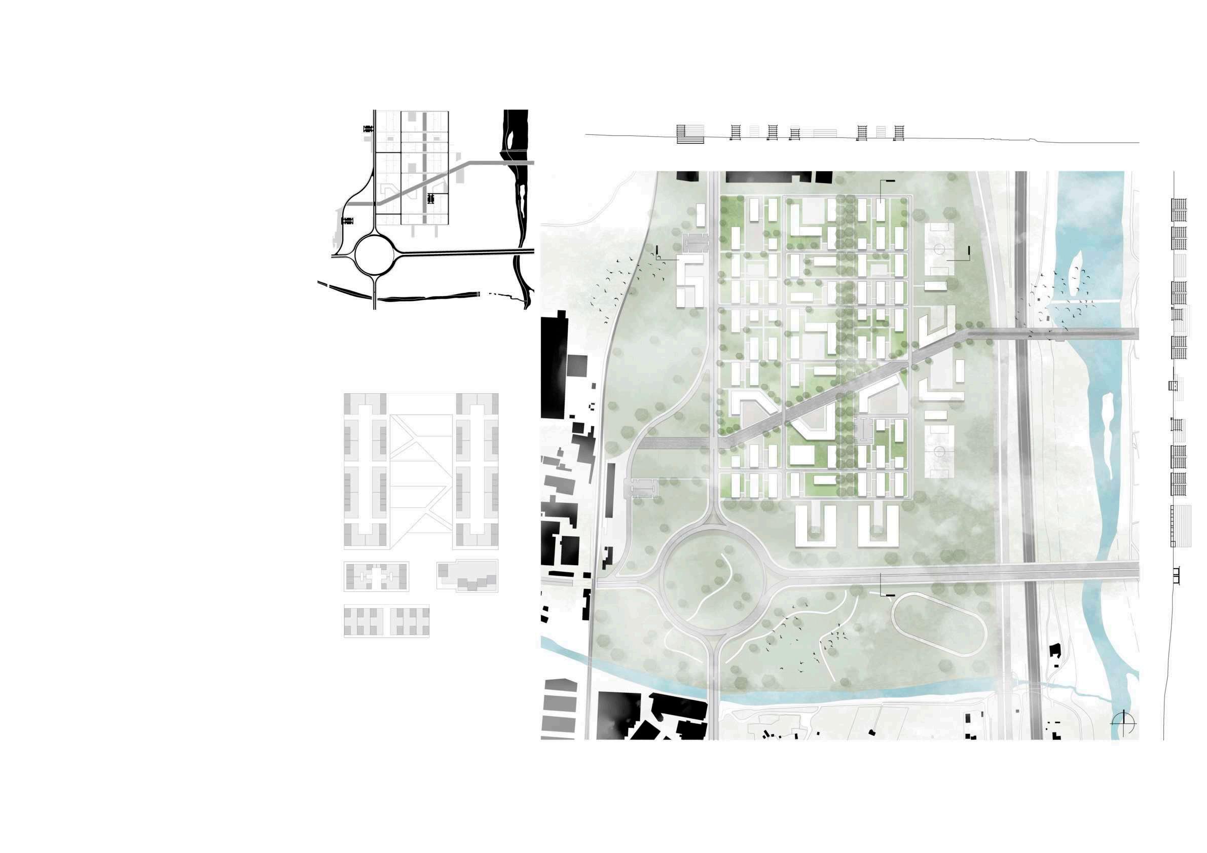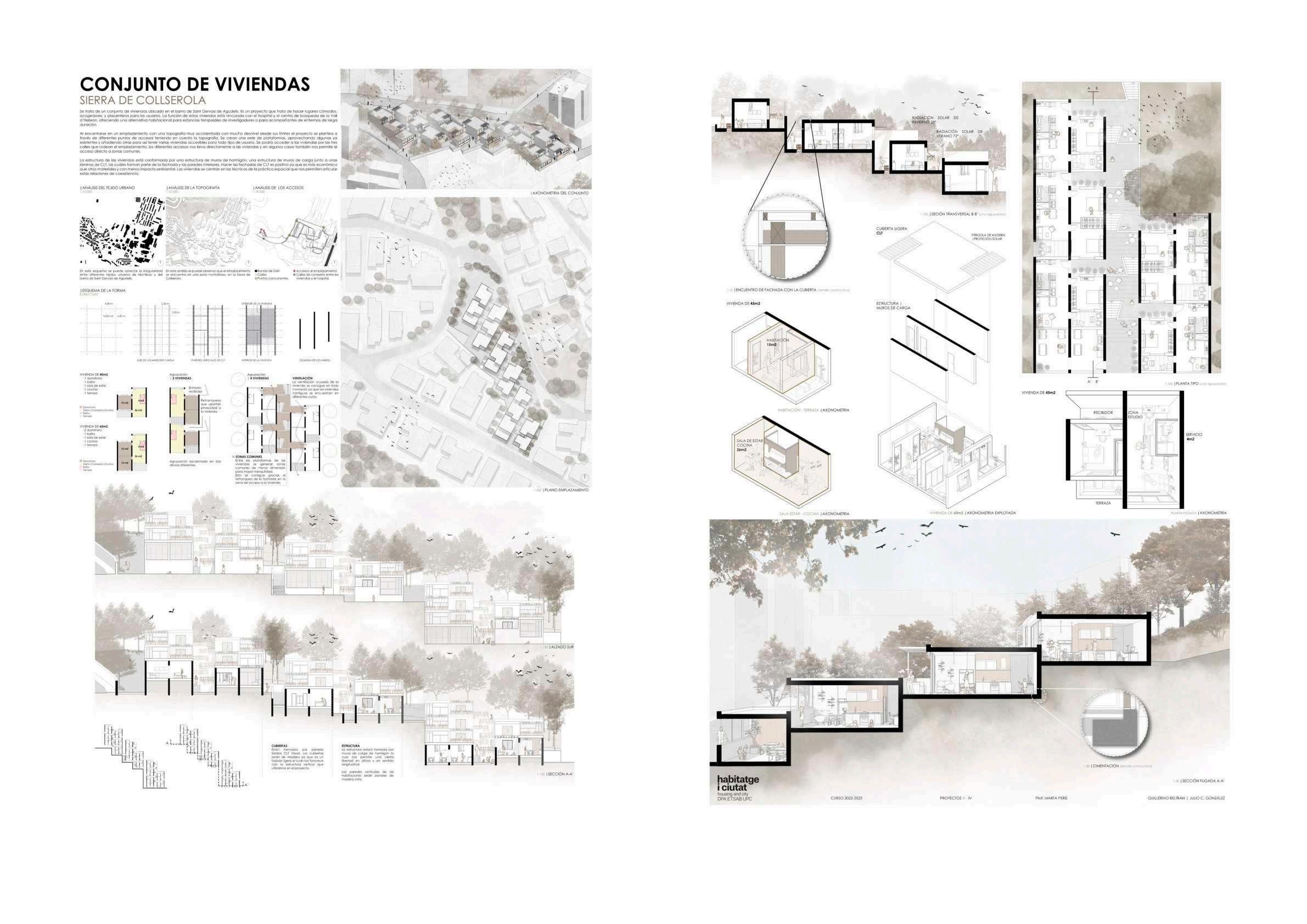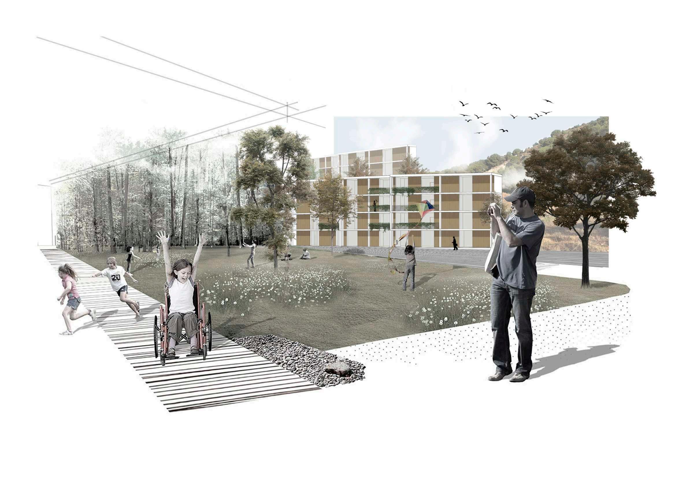 rrdio para así poder atravesar la naturaleza de forma más natural posible. Es un proyecto en el que el conjunto conjunto de viviendas se ubica en la zona del emplazamiento con más desnivel dejando así las zonas más planas