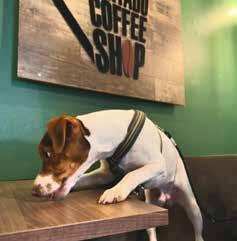 Butiken är öppen mot herrdelen och ett rufsigt litet huvud med lugg tittar fram under några kavajer. Butikshunden Doris. Hon kommer fram och hälsar när Rebecca ropar.