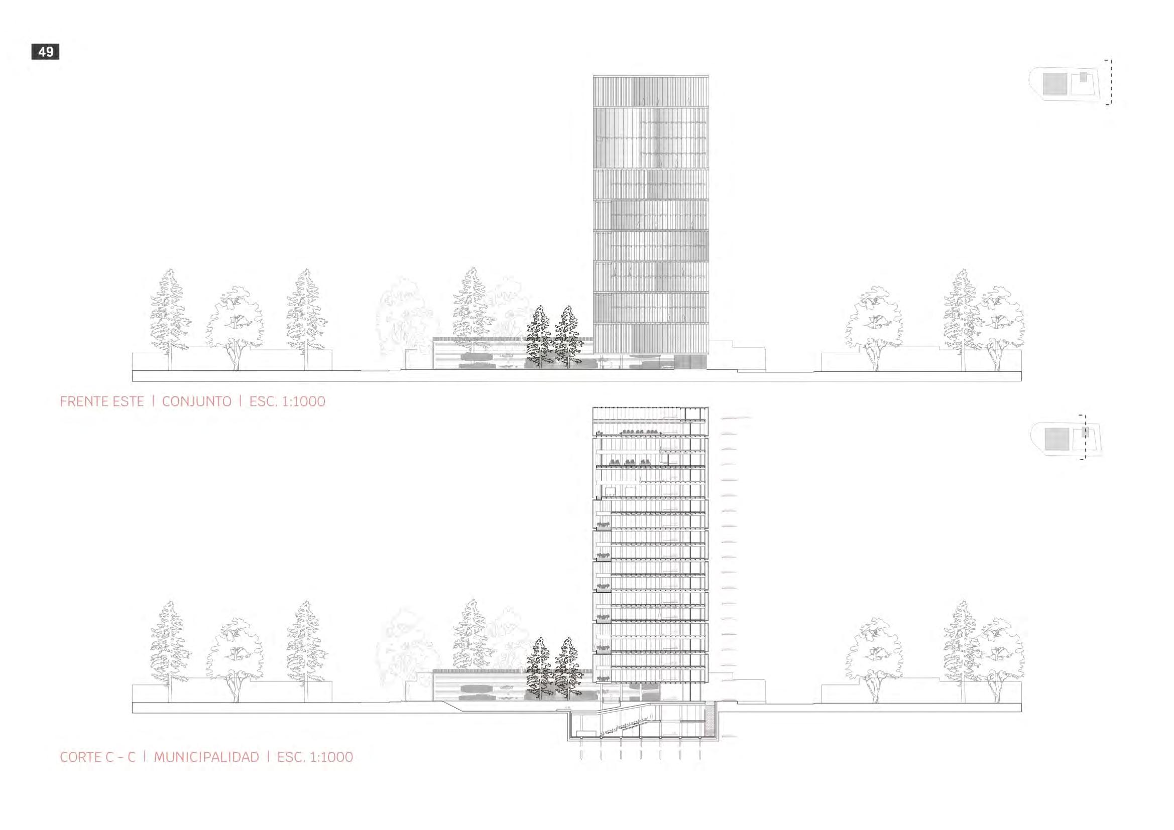 PANDORA es el resultado de la mediación que se realizo entre el terreno, su contexto inmediato y su contexto mayor. El conjunto se apoya sutilmente en el parque con la intención de minimizar el impacto de su inserción y conservar el carácter del mismo. Hacia el oeste se despliega y eleva una lamina con todas las actividades cívicas y culturales para el barrio; hacia el este surge como un gran hito el edificio municipal en busca del carácter representativo requerido por el mismo. Ambos se vinculan gracias a un gran eje urbano que recoge el flujo de personas que circulan por el conjunto logrando una armónica composición entre las partes.