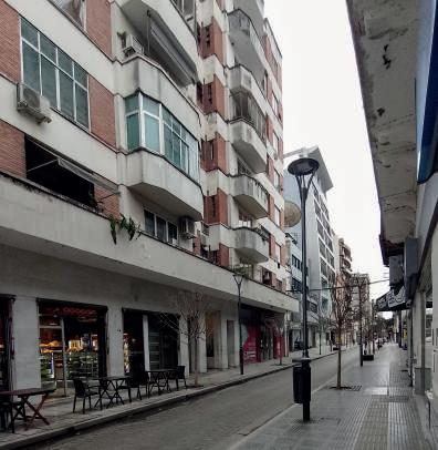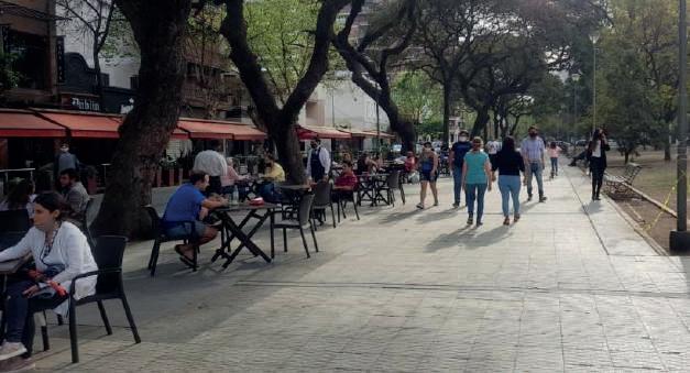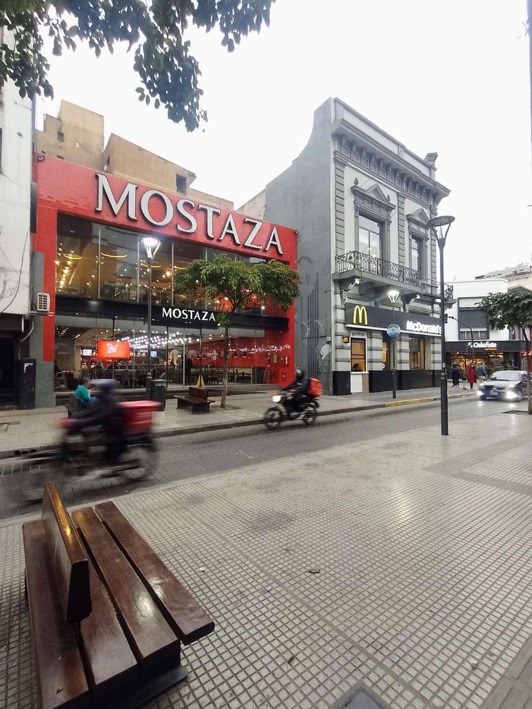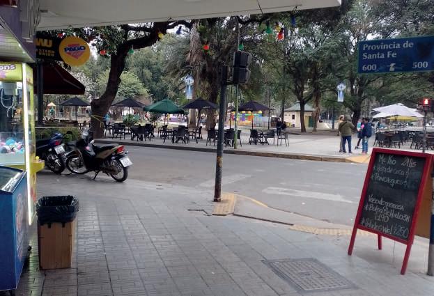 Esquina Laprida y San Martin. Modificación de la percepción del la calle. Angostamiento. Ocupación de la por transeúntes, comercios, personal de etc. Cambio en los de generan grandes