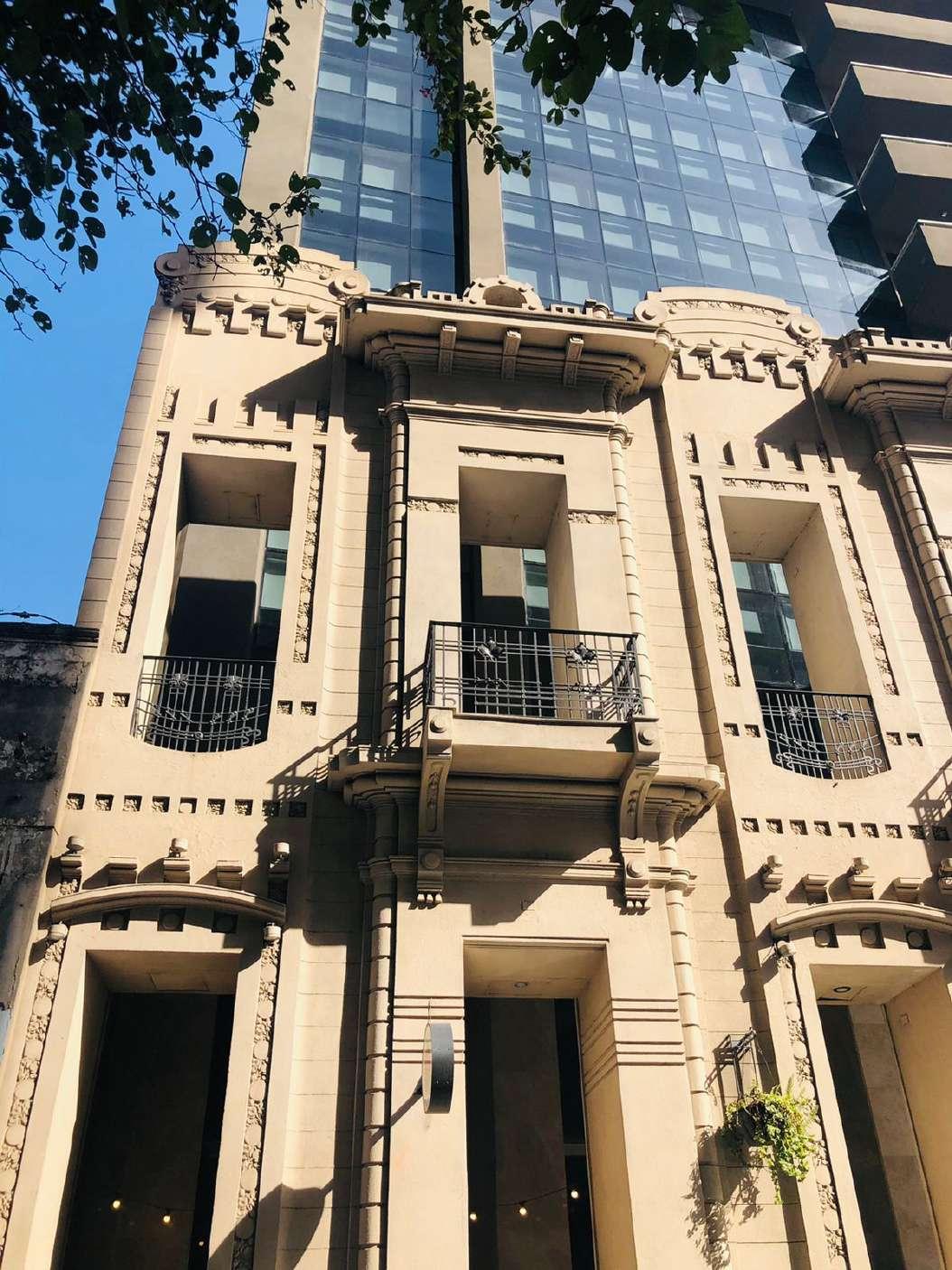 Calle 25 de Mayo. Contraste entre la restauración y conservación y la sustitución total por una construcción nueva que atiende solamente a fines comerciales, sin consideración del contexto inmediato. Ambas actuaciones surgen de entidades privadas, grandes cadenas de comida rápida.
