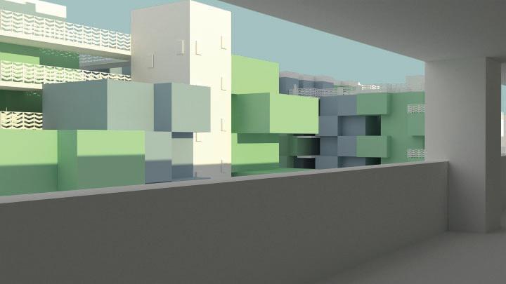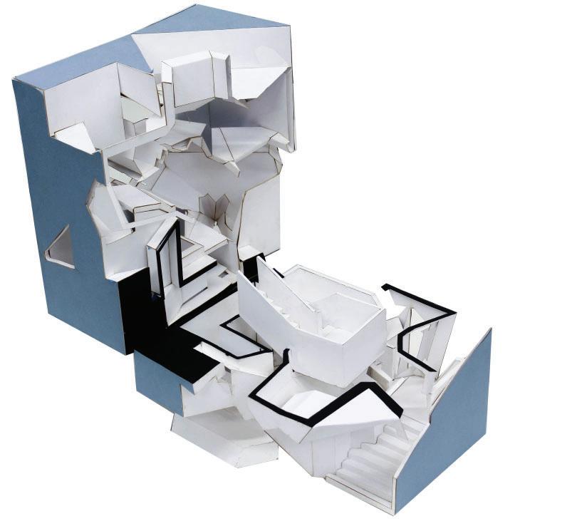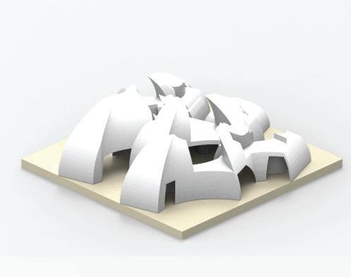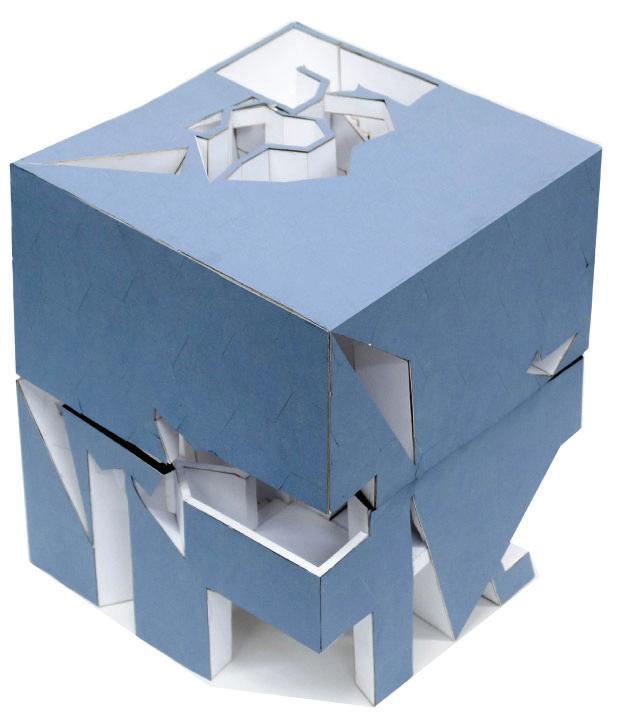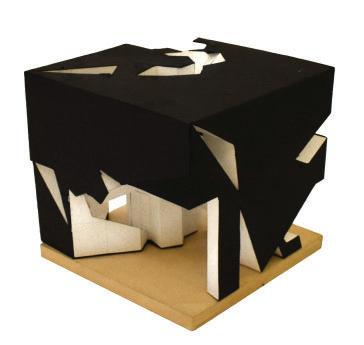 Enclosing and subtracting the solid model into a solid square creating a void mass of the solid. The concept was to see and experience the inside-out.