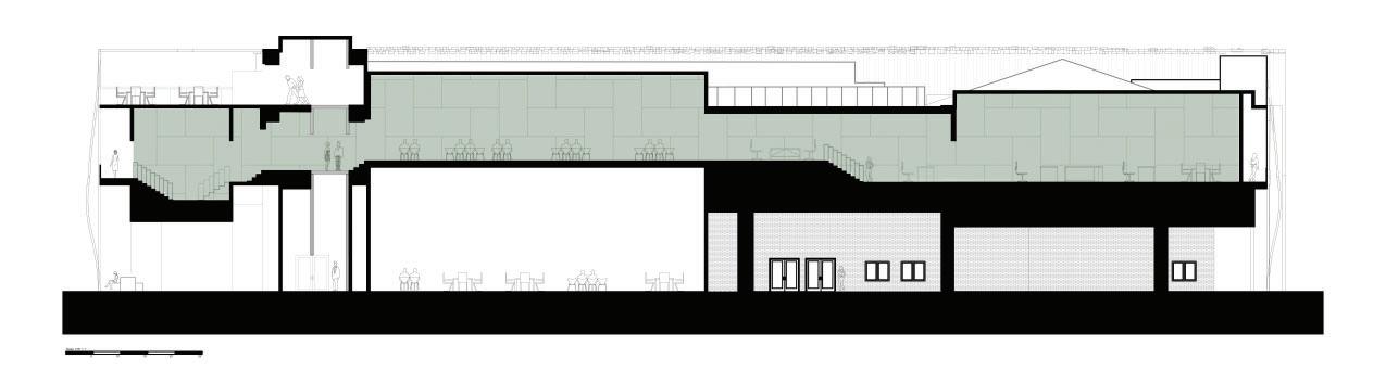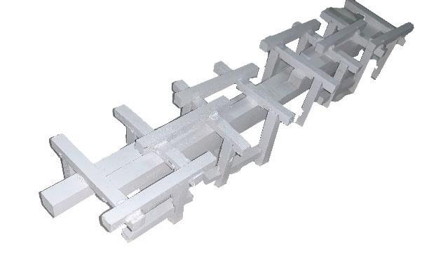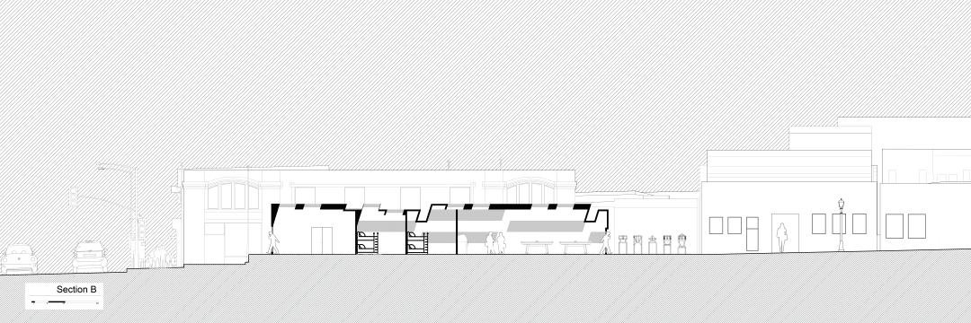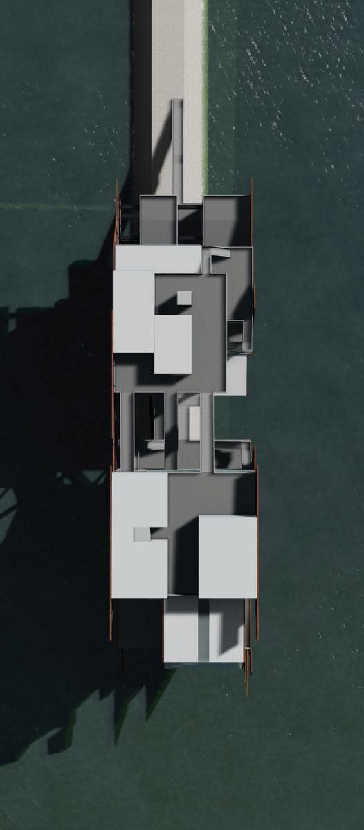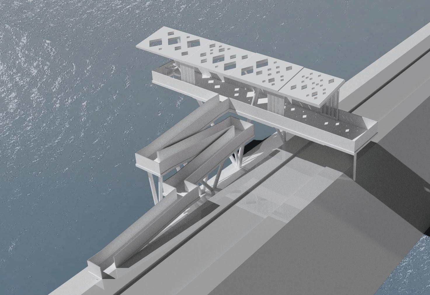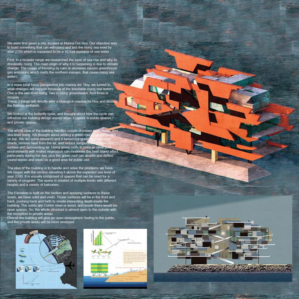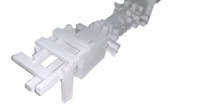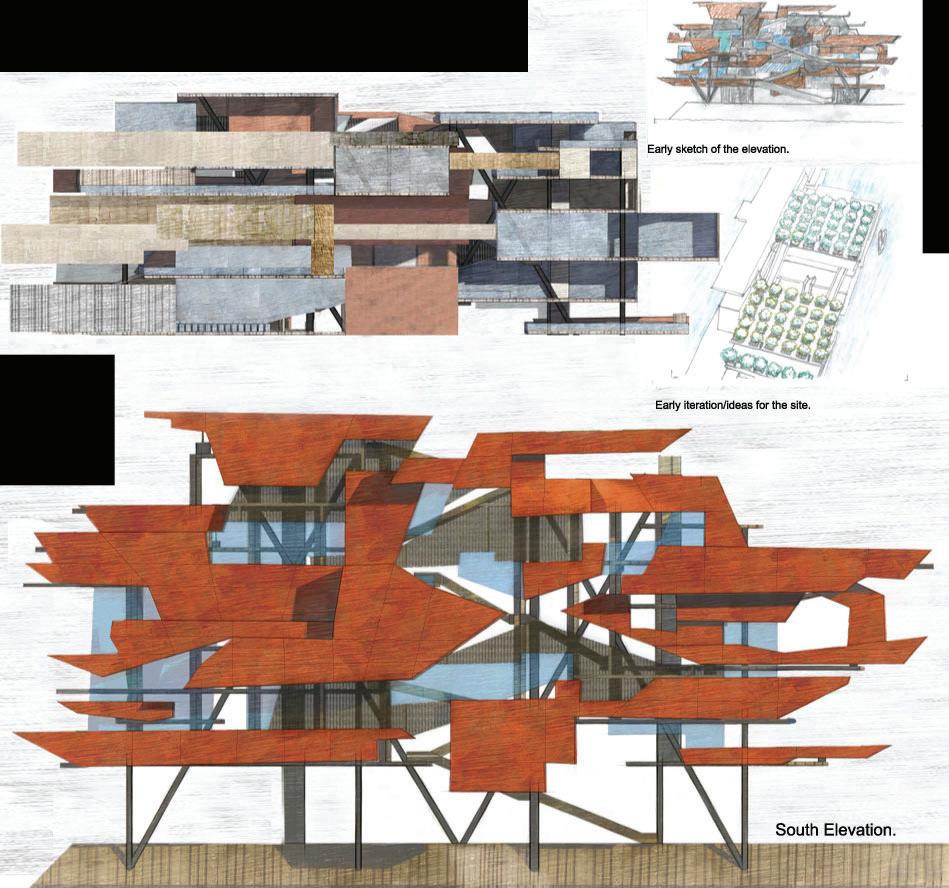 This 100’ Length x 20’ Width x 15’ Height at 1/8” scale were designed using a combination of interlocking and digital frabication method from 3d printing. The model translates latent principles of construction into a physical artifact responsive to the fabrication methods deployed. The orthographic drawings delineate the spatial and atmospheric qualities in the design.