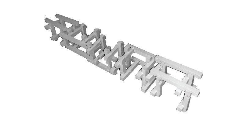 Three 100’ Length x 20’ Width x 15’ Height at 1/8” scale were designed using a combination of interlocking and bassword sticks. The three models explore material properties in combination with construction logics.