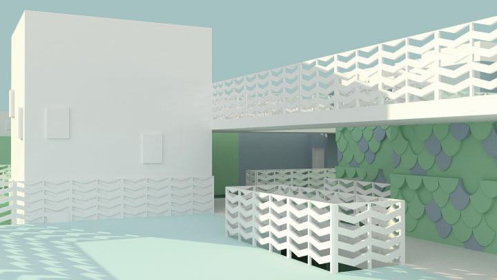 This project derives from the ISO-Bubble armor to create a safe space for its user(s), giving them protection and the ability to move freely around its environment. The peripheral is developed with the idea to envelope around the site’s original building.