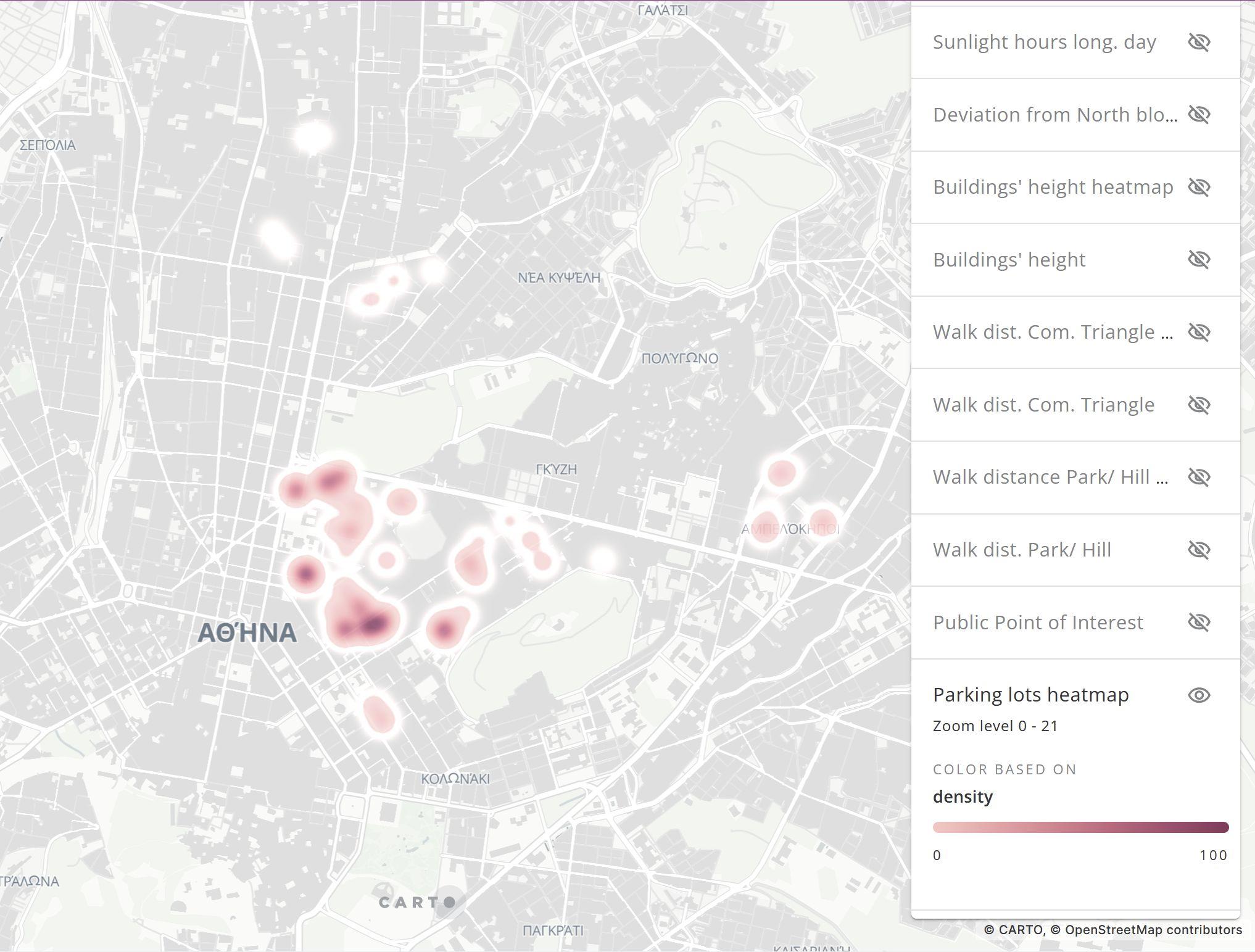 AKALYPTOS ATHENS WEB APP explores the potential of urban blocks' "Akalyptos" spaces (uncovered areas). The Akalyptos Spaces could be a possible solution ensuring the survival of Athens from invisible but ever-present threats, global warming & urban heat island effect. Using AI Algorithms, we define those spaces' current score, their ideal usage & privacy character