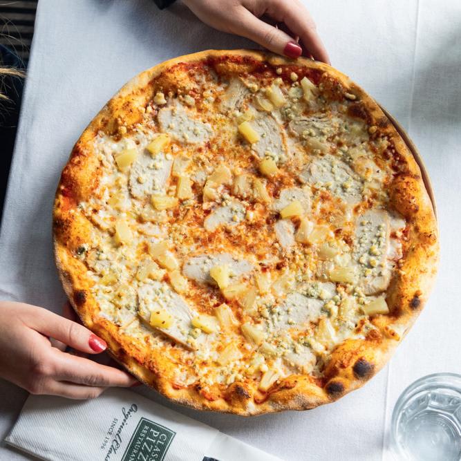 Classic Pizzassa herkutellaan kana, ananas ja aurajuusto pizzalla. Ei saatavilla normaalisti.
