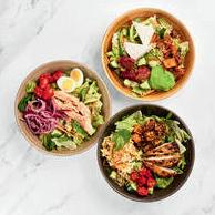 Kotimainen kana, caesarkastike, parmesanjuusto, jääsalaatti ja tuorejuusto.
