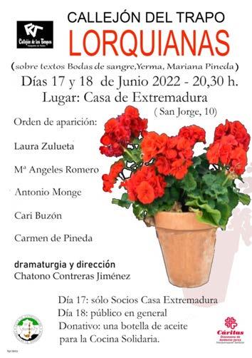 Comenzó su recital con poesías de Alberto Cortez, Fray Alien, Grace Ramsay, Dalay lama, Lorena Pronsky, Amado Nervo, Facundo Cabral, Juan Quesada... terminando su recital con poemas dedicados a Andalucía y con el célebre poema "El Piyayo" de José Carlos de Luna. PARTICIPACIÓN DE OTRAS ENTIDADES PÚBLICO/PRIVADA EN LA ACTIVIDAD DE LA ENTIDAD SOLICITANTE DE LA AYUDA